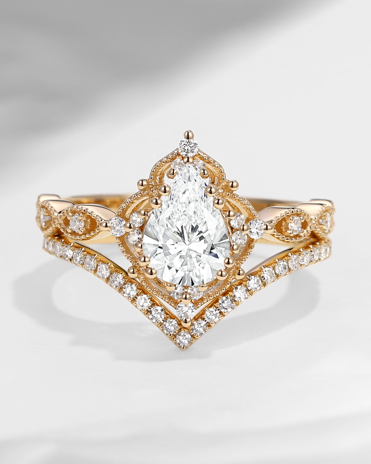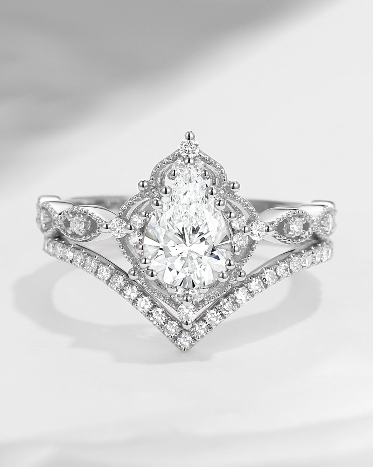 1.0ct-2.0ct Pear Cut Lab Diamond Antique Stacking Engagement Ring 2pcs - Evelyn