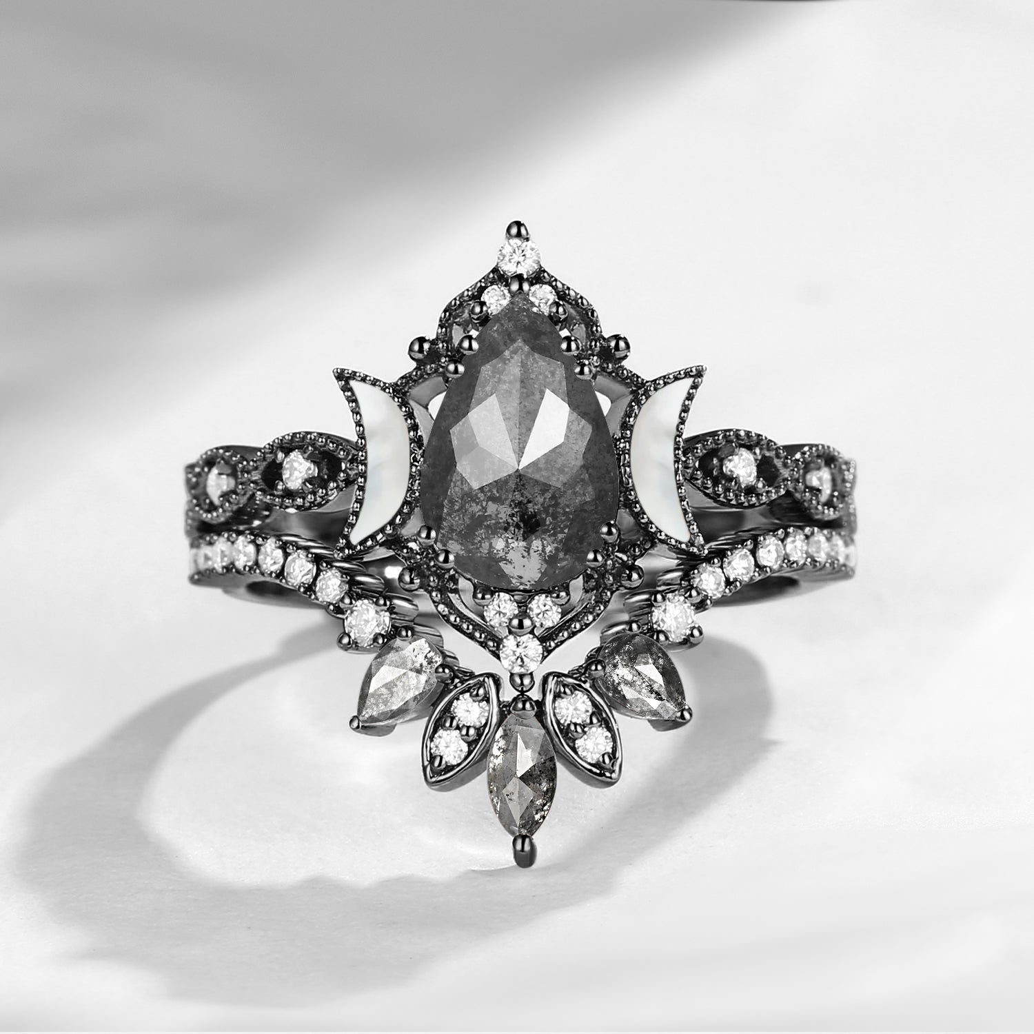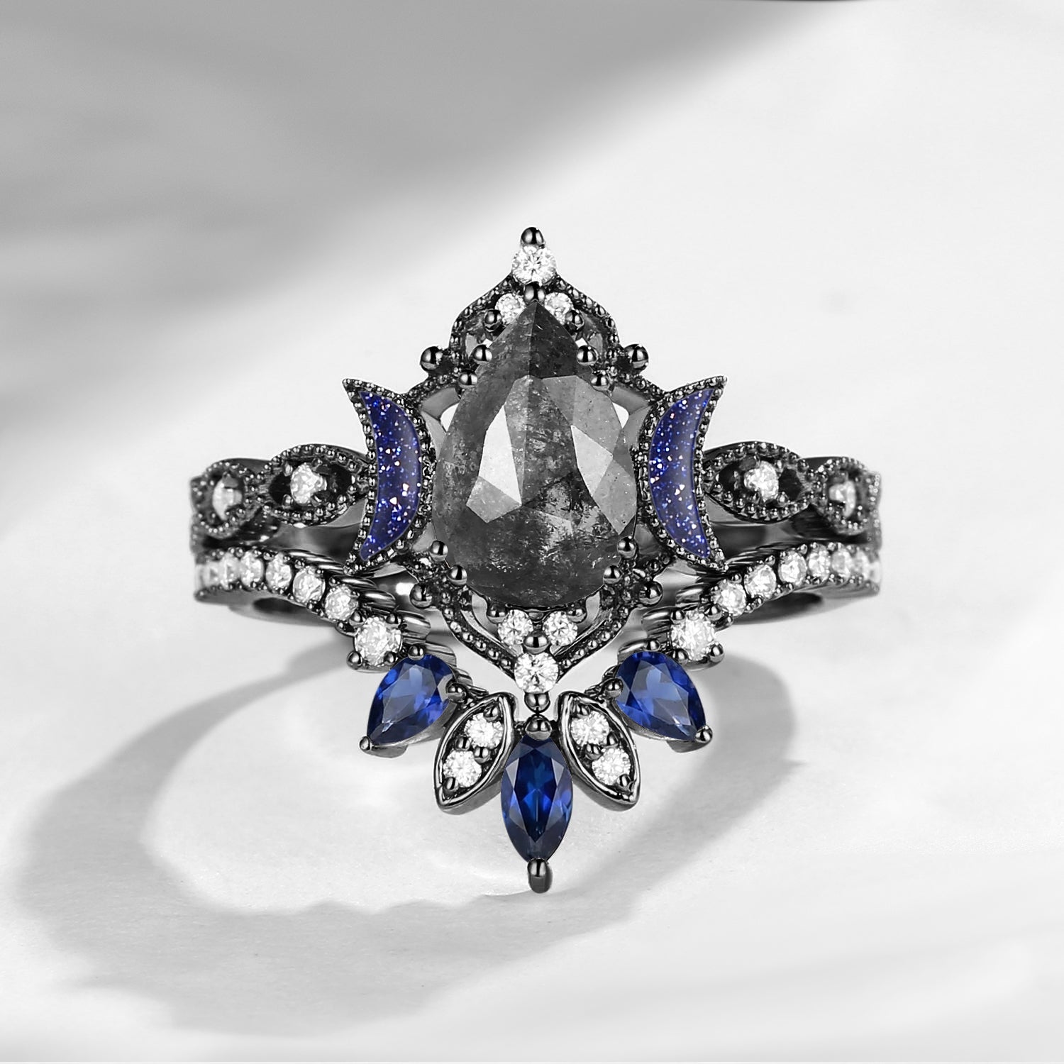 Crescent Moon | Pear Cut Blue Lab Diamond 'Ultra Galaxy' Engagement Ring Set 2pcs