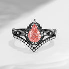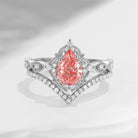Pear Shaped Pink Lab Diamond Antique Stacking Engagement Ring 2pcs - Evelyn