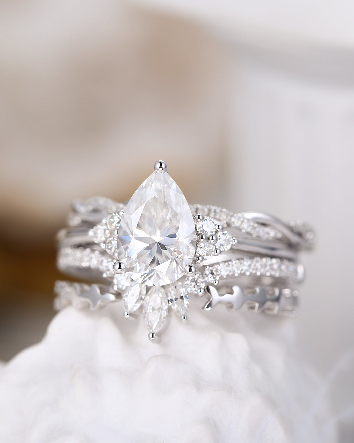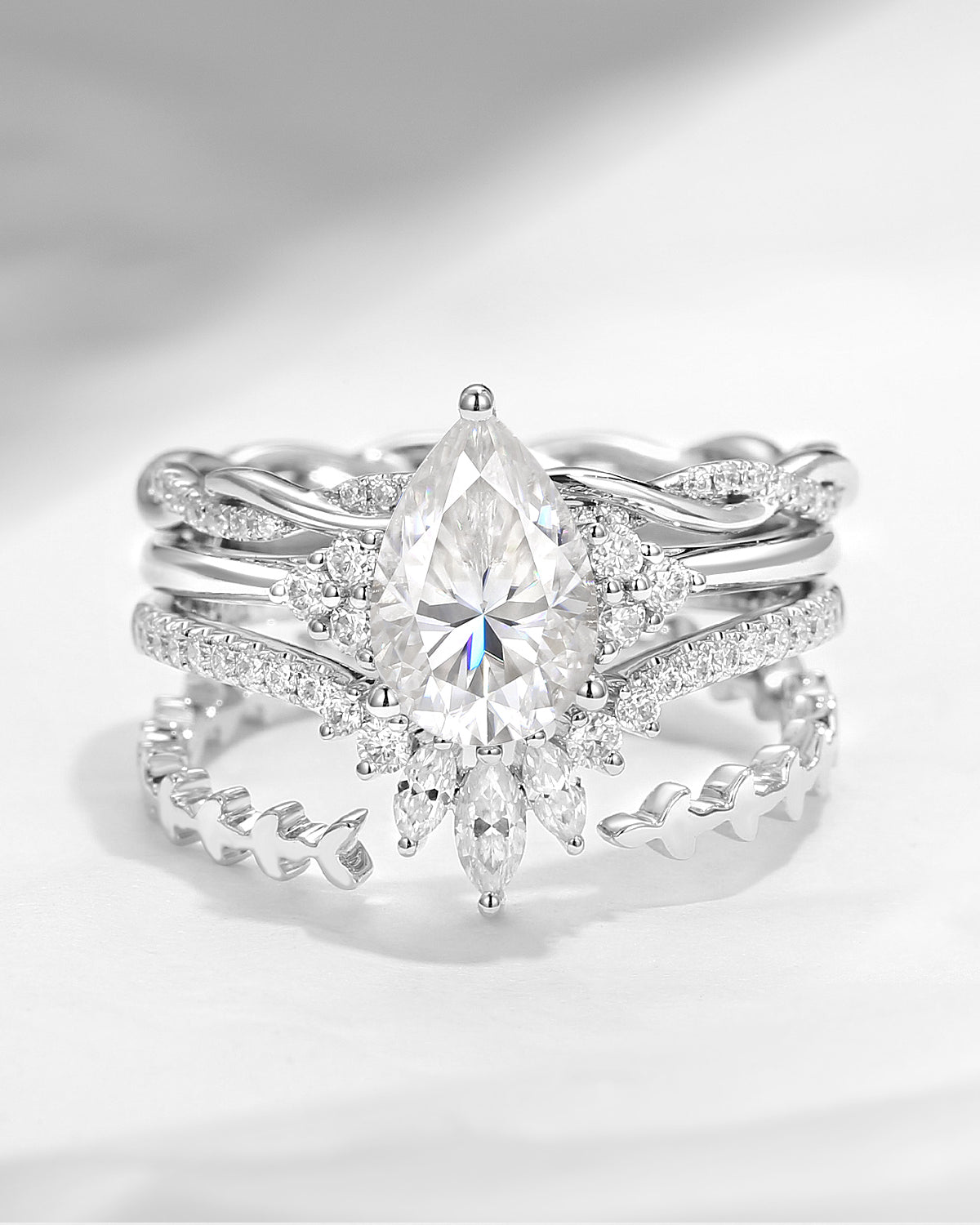 1.5ct Pear Cut 'Stacking Cluster Extravaganza' Ring Set 4pcs