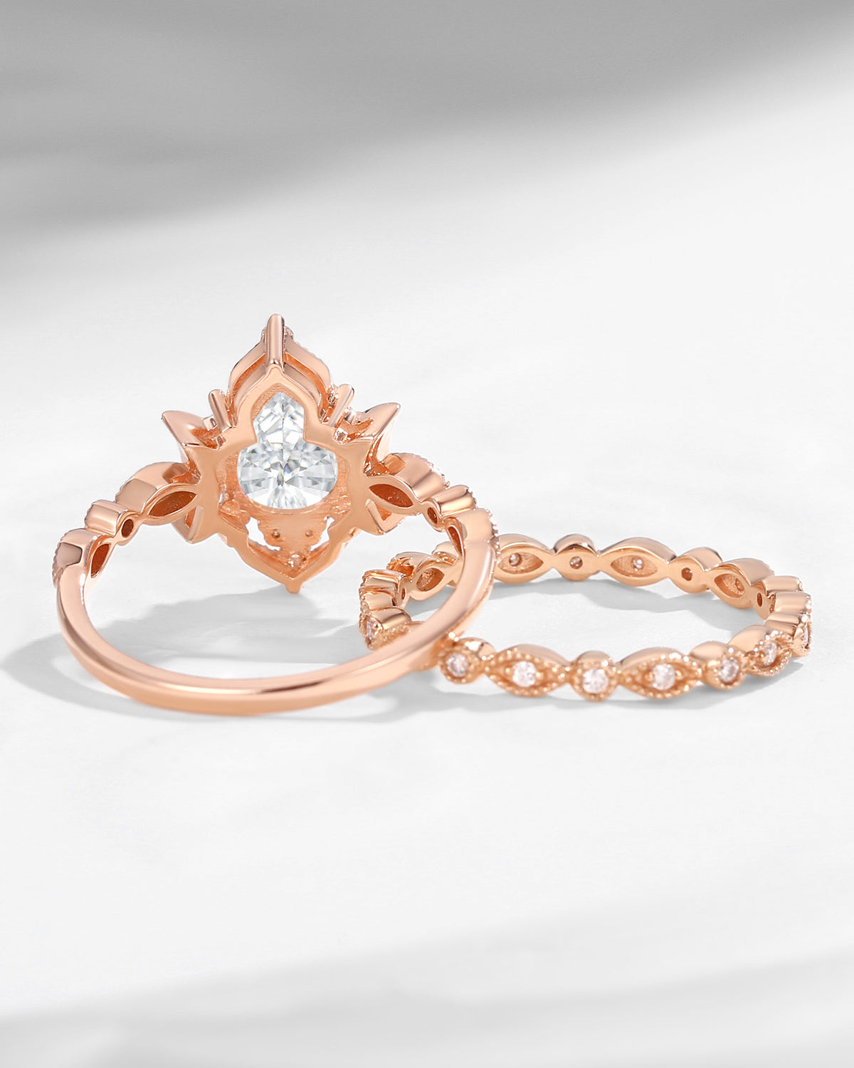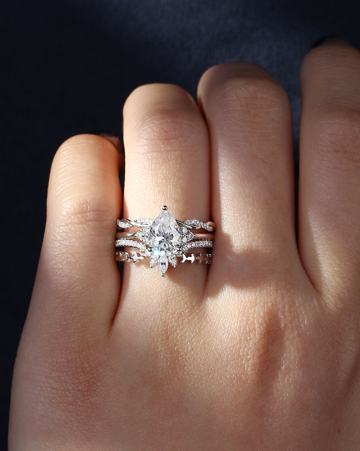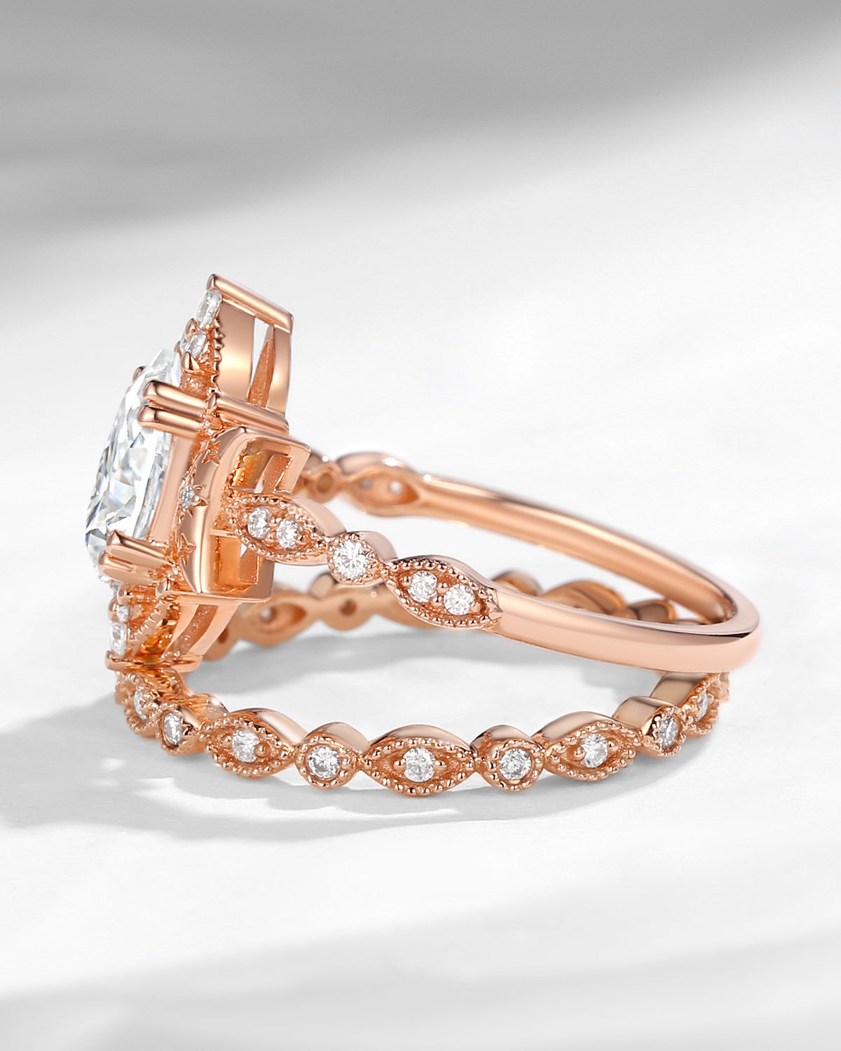 Crescent Moon | Vintage Pear Cut Moissanite 'Moons & Stars' Engagement Ring 2pcs