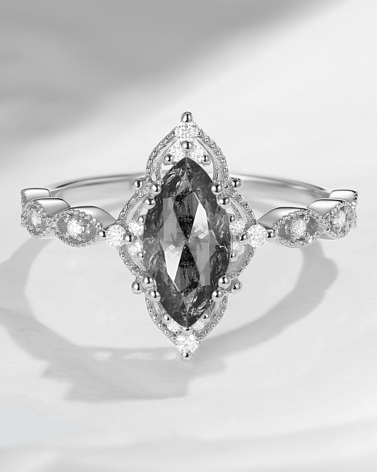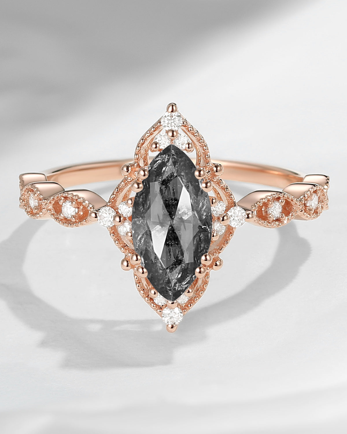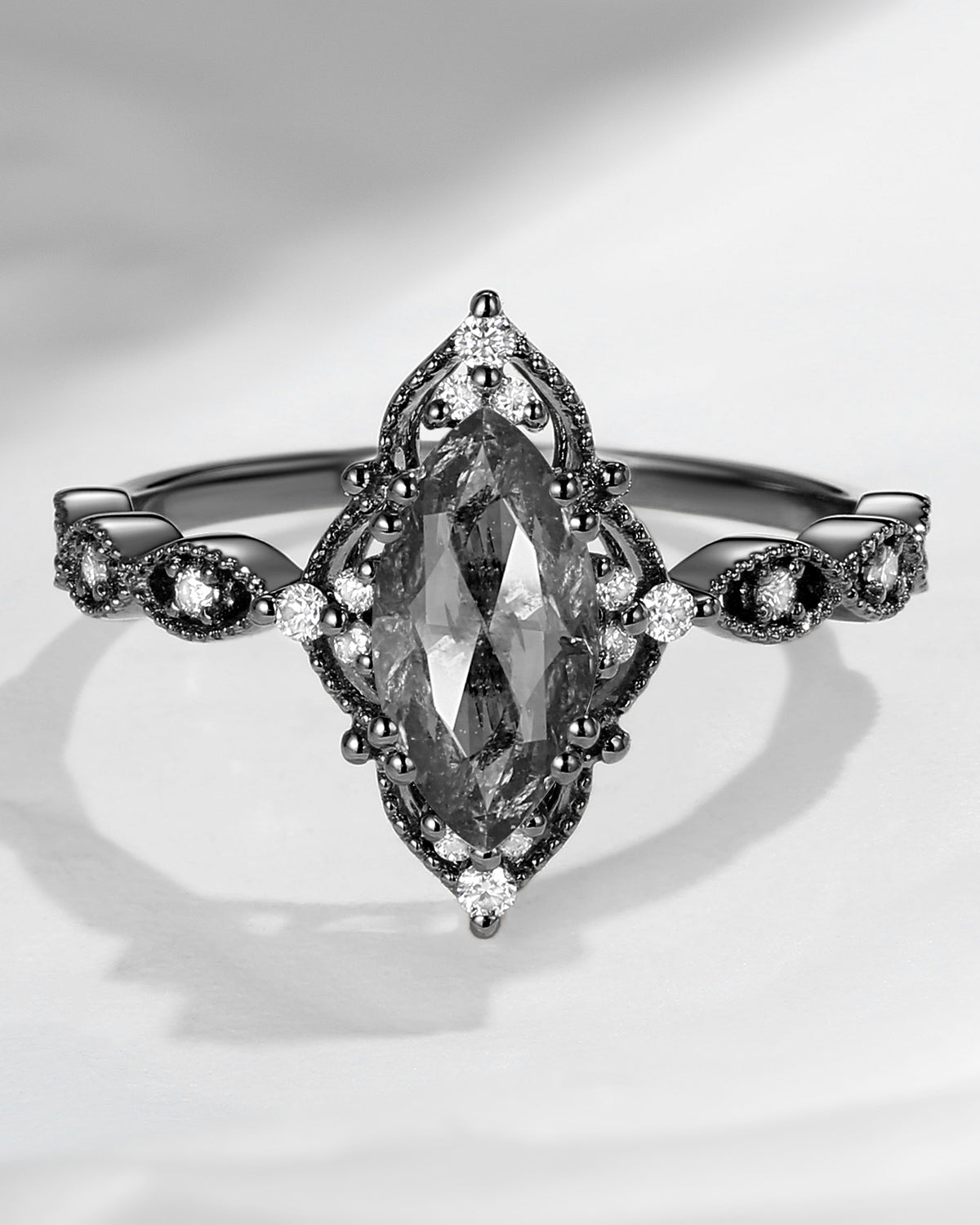 Antique Kite Cut Salt And Pepper Diamond Engagement Ring Set 2pcs