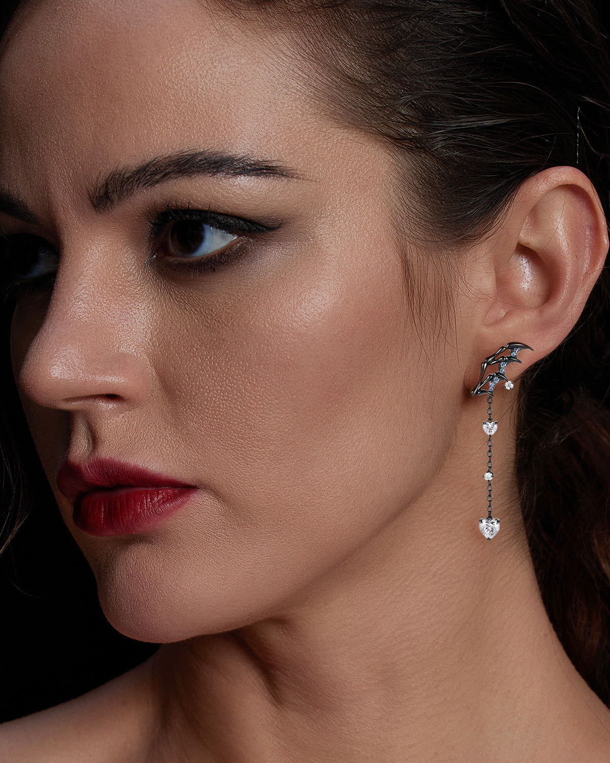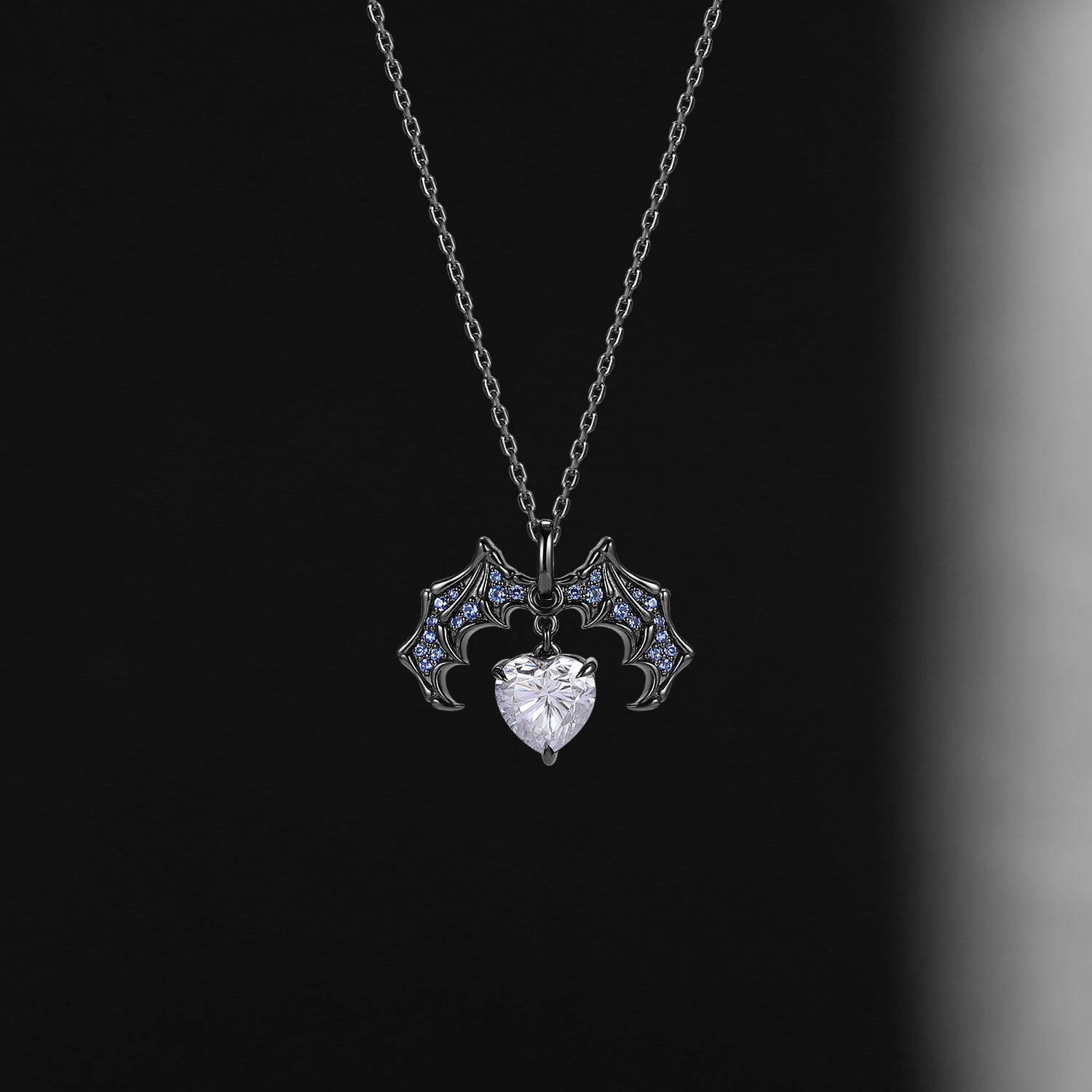 Heart Shaped Moissanite Gothic Inspired Black Gold Engagement Ring - Bat Ring
