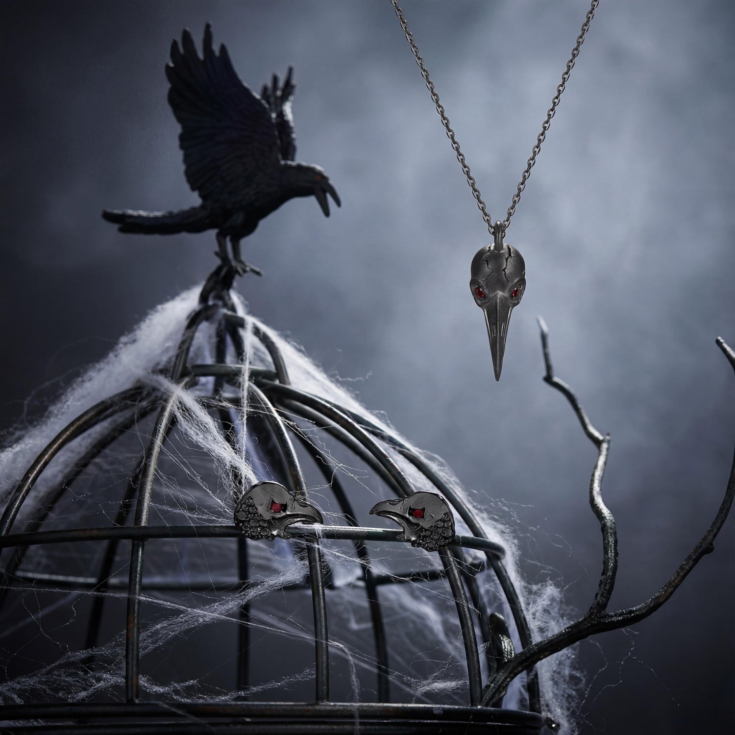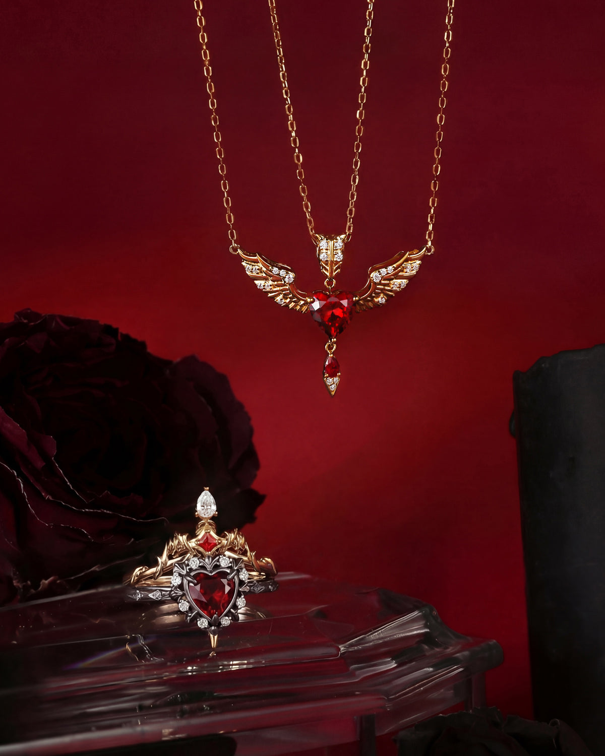 Gothic Bat Inspired Kite Cut Garnet Vintage Engagement Ring Set 2pcs