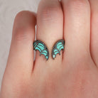 Curved Bat Wing Inspired Turquoise Black Gold Wedding Enhancer Ring