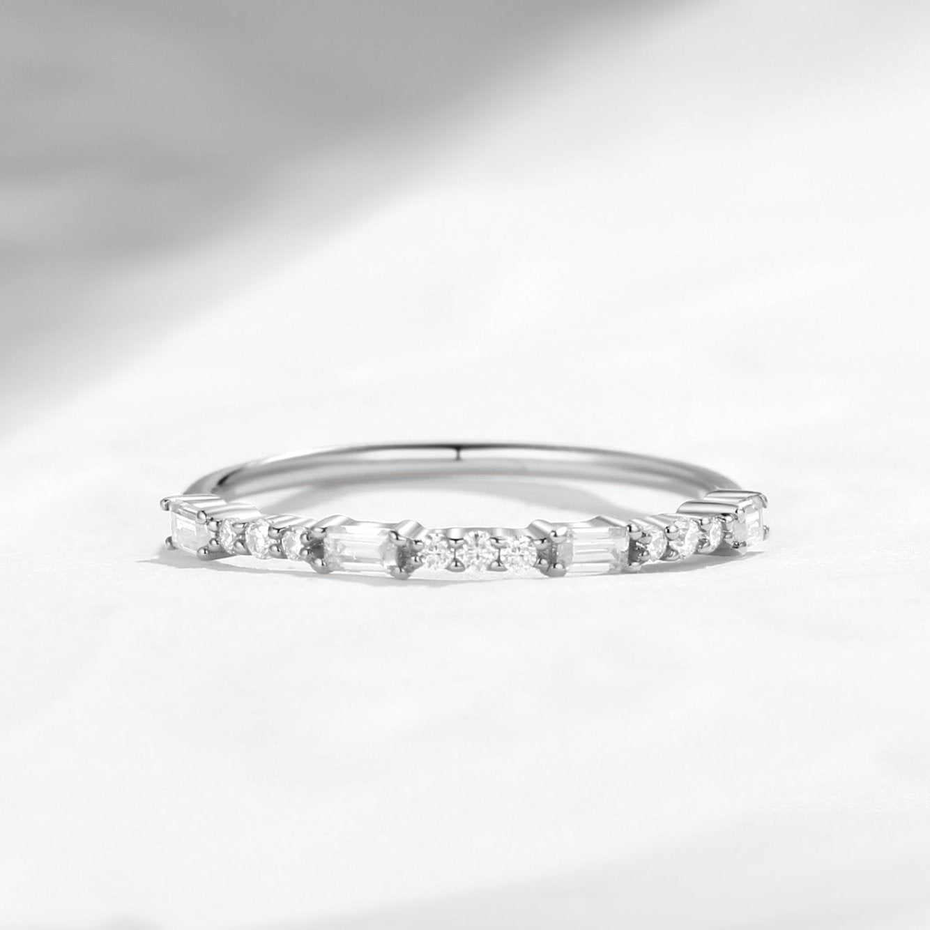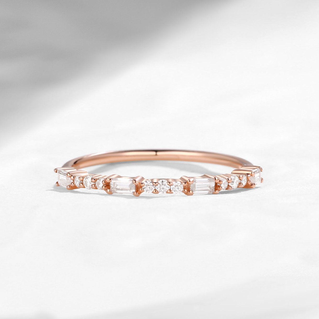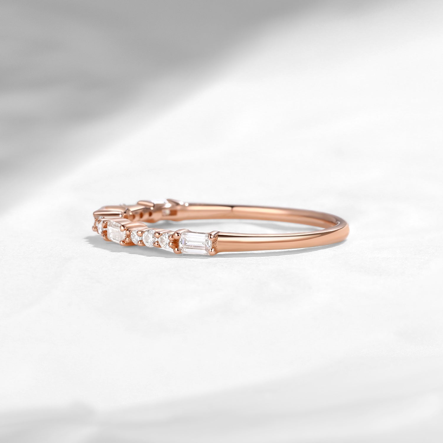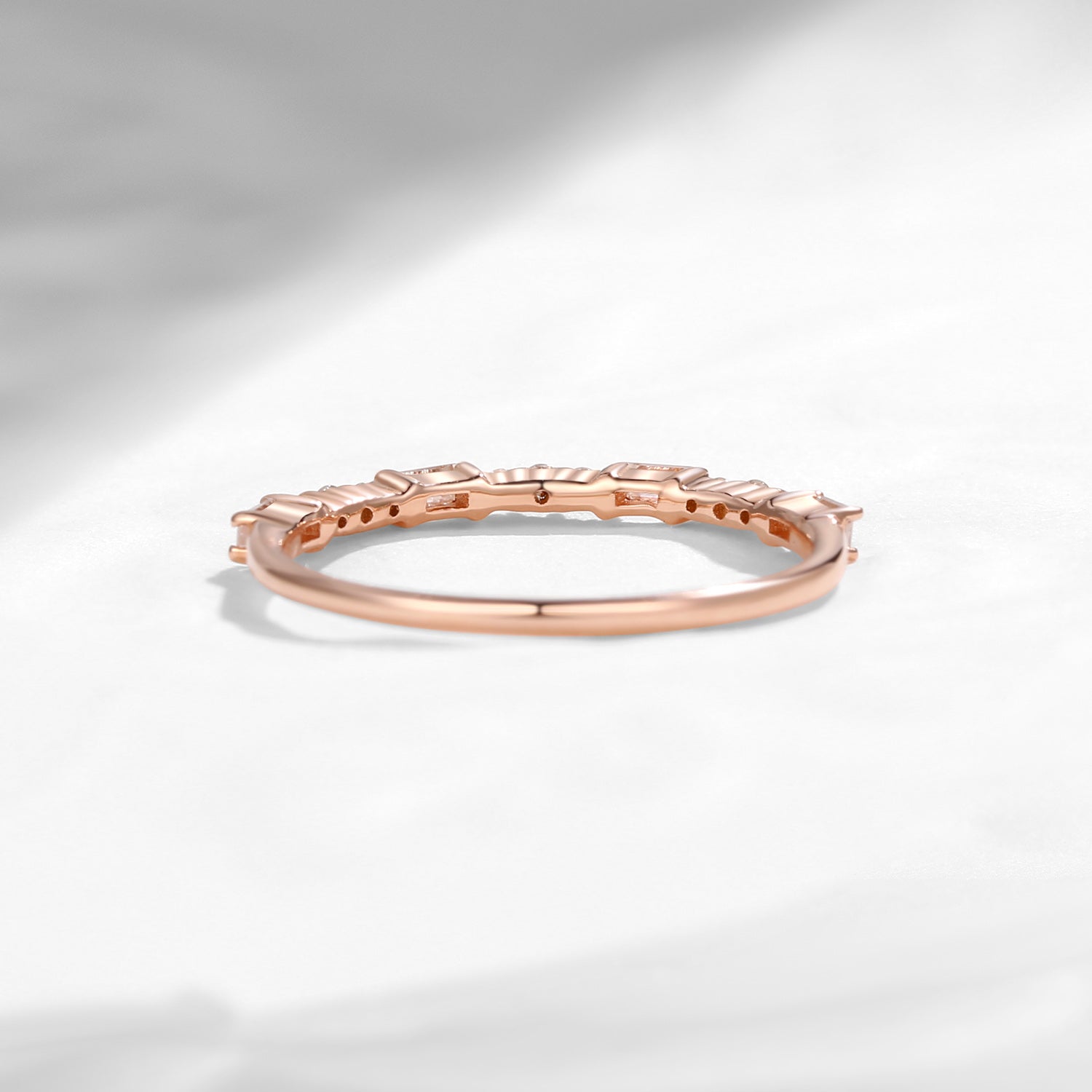 Emerald Cut Moissanite Wedding Band Gold Eternity Band Women Promise Anniversary Gift For Her Mini Stacking Dainty Unique
