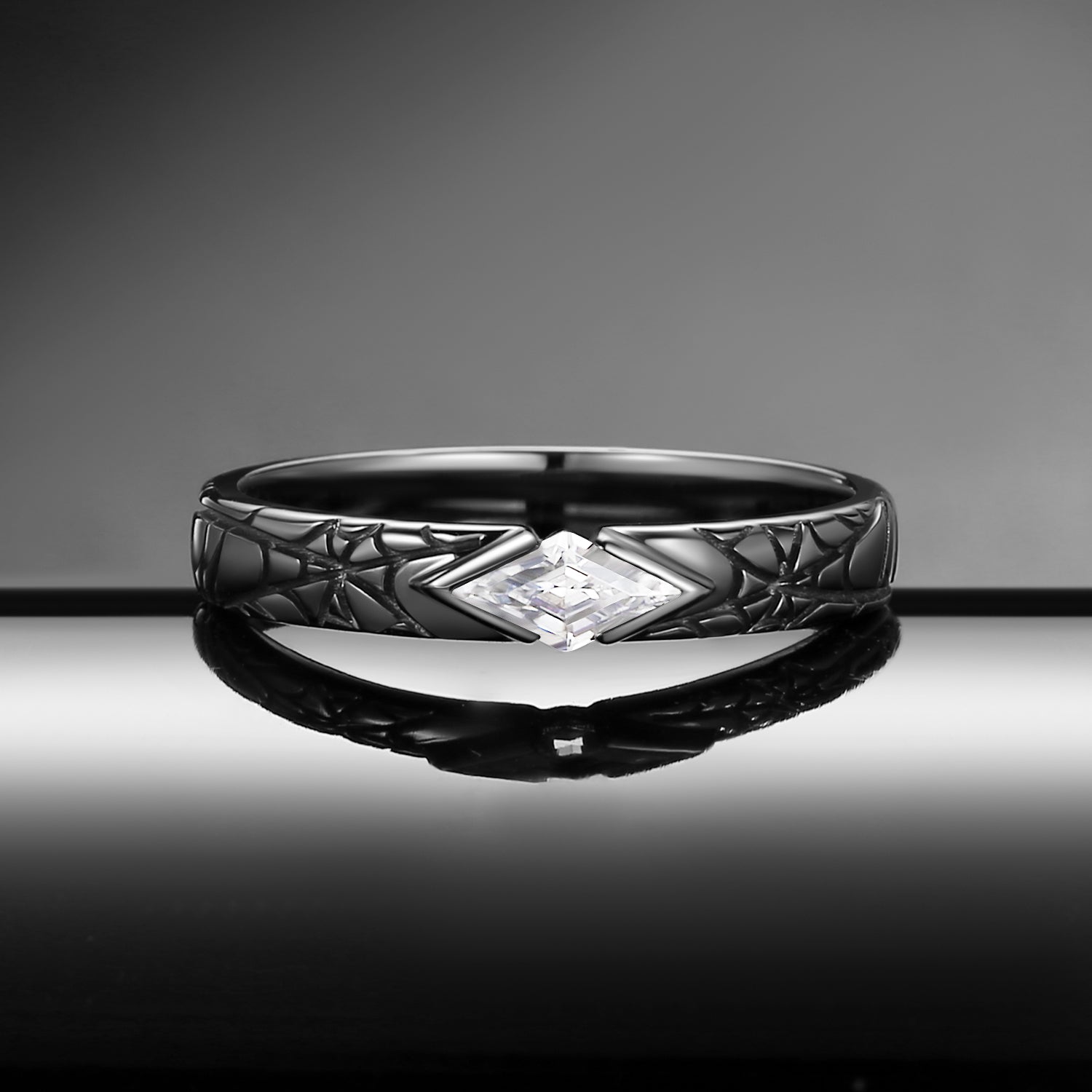 Gothic East to West Kite Moissanite Spider Web Filigree Wedding Band For Men For Her