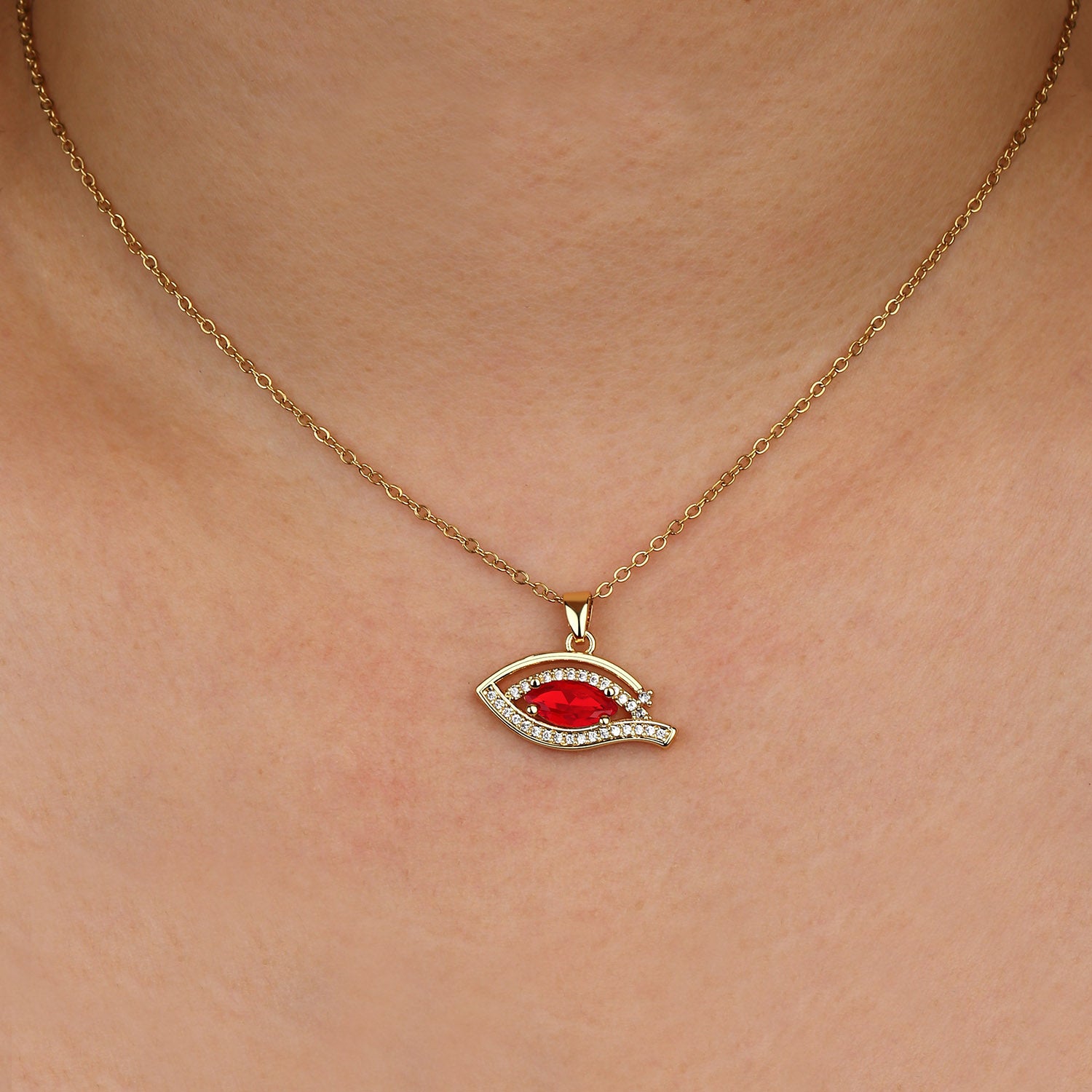 Marquise Lab Ruby 'Burning Red' Eye Necklace