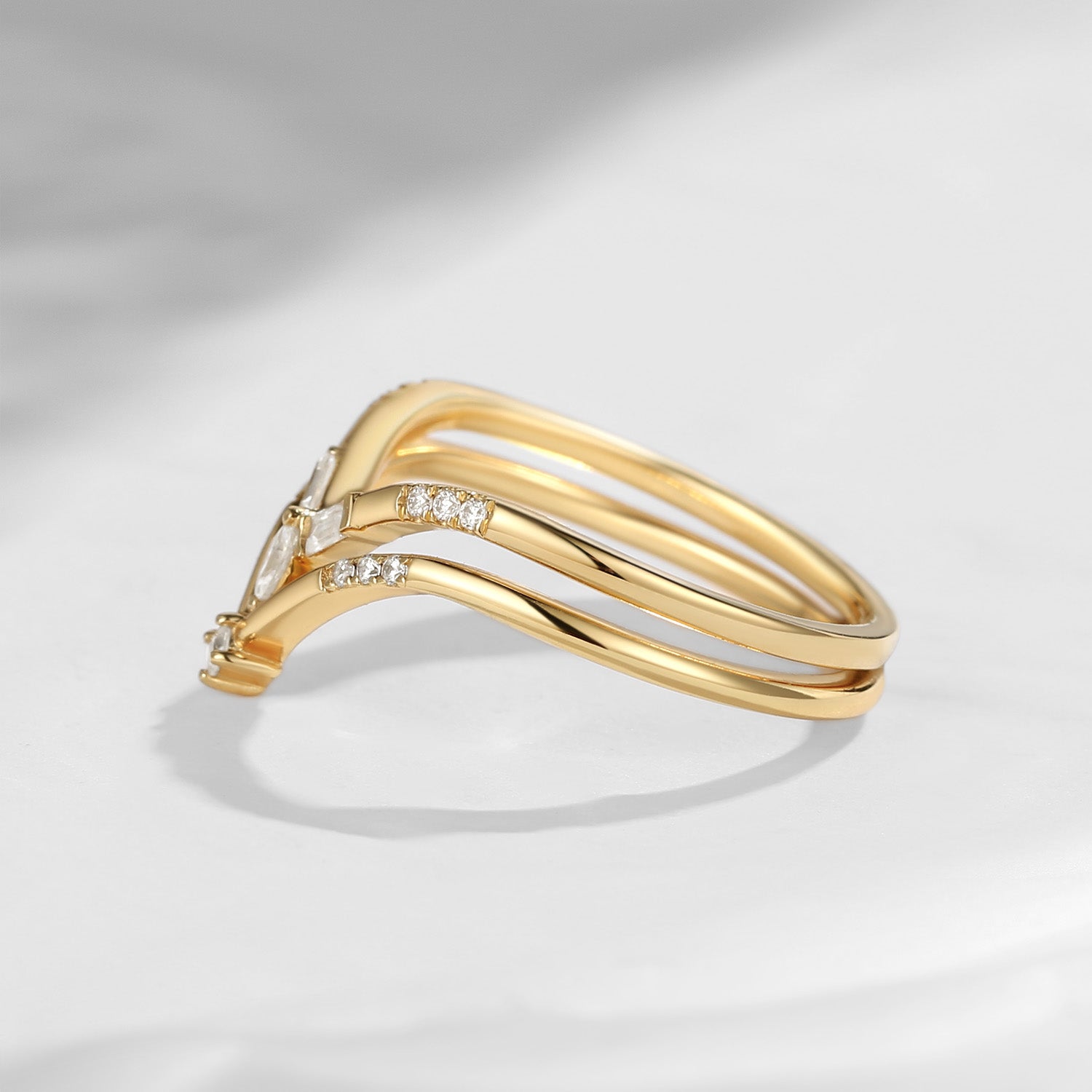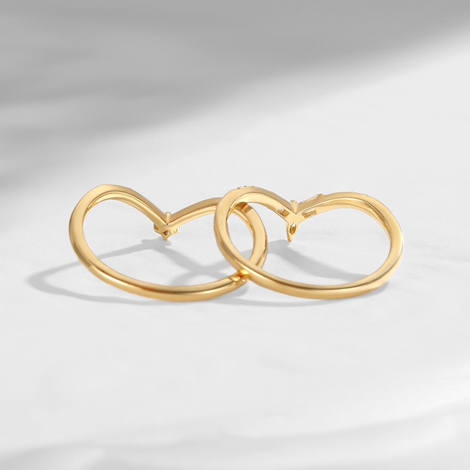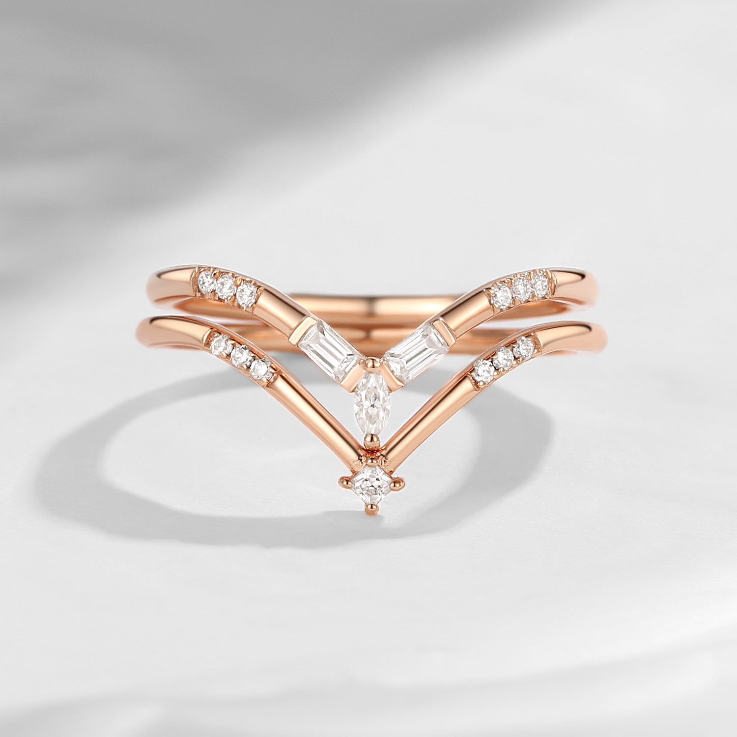 Minimalist Moissanite V Shaped Wedding Band Set 2pcs