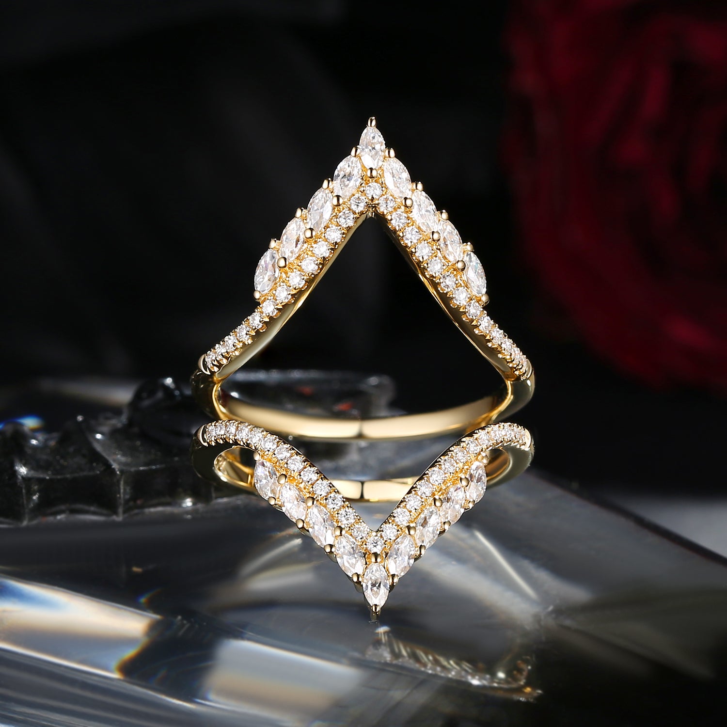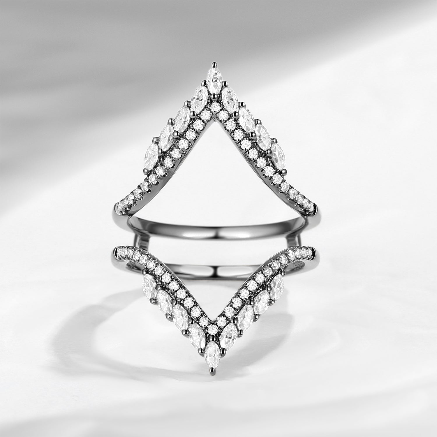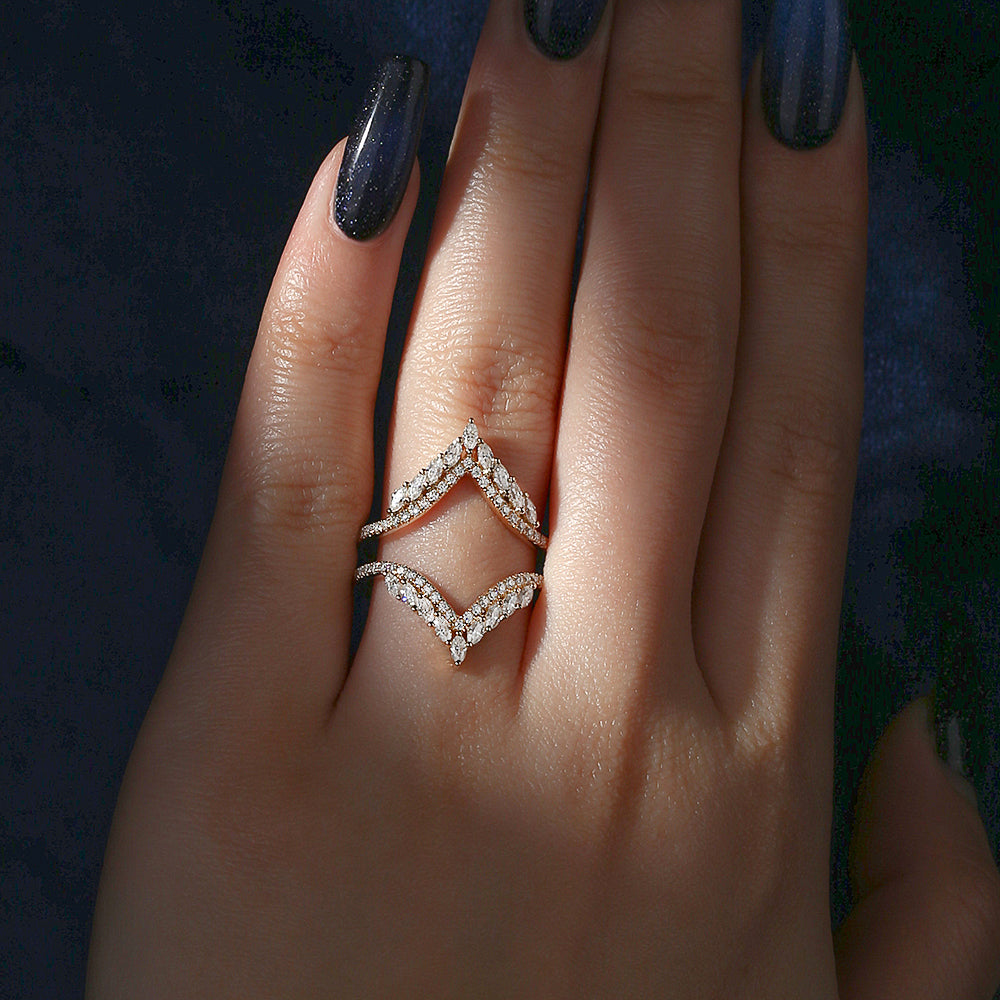 Signature Ring Jacket 'Guardian Angel' Cluster Cage Ring 2pcs Gold Wedding Band Women Marquise Moissanite Ring Moissanite Band Chevron Ring Jacket