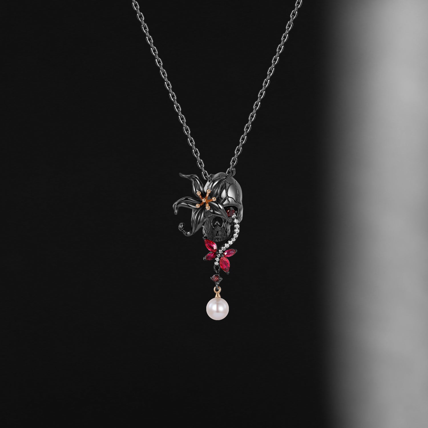 Unique Skull & Skeleton Gothic Flower Inspired Pendant Necklace Halloween Gift