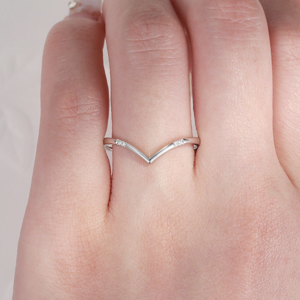 Mini Wedding Band Women Custom Fit Solid Gold Wedding Band Moissanite Wedding Band Chevron Ring V Shape Thin Dainty Ring