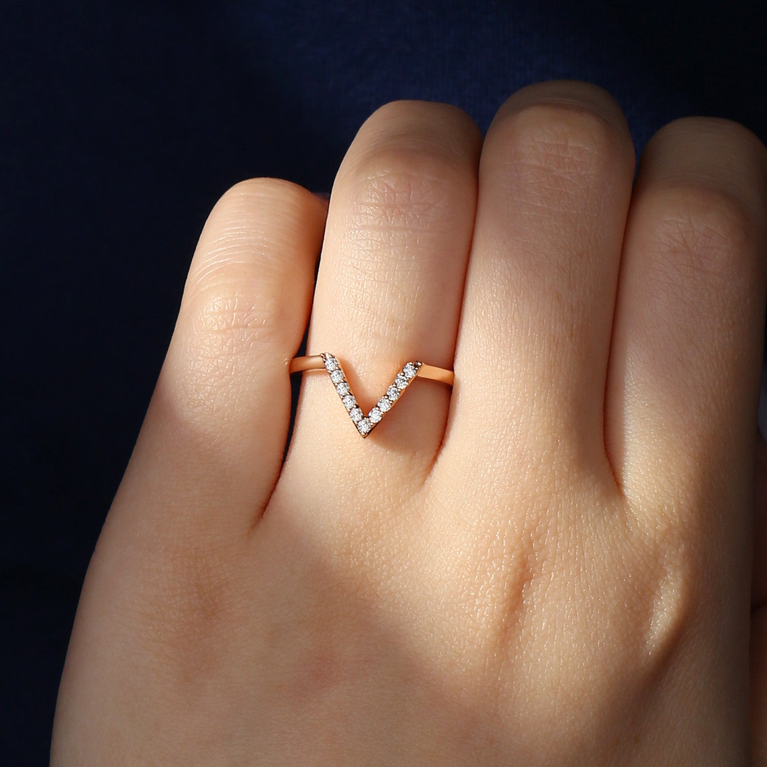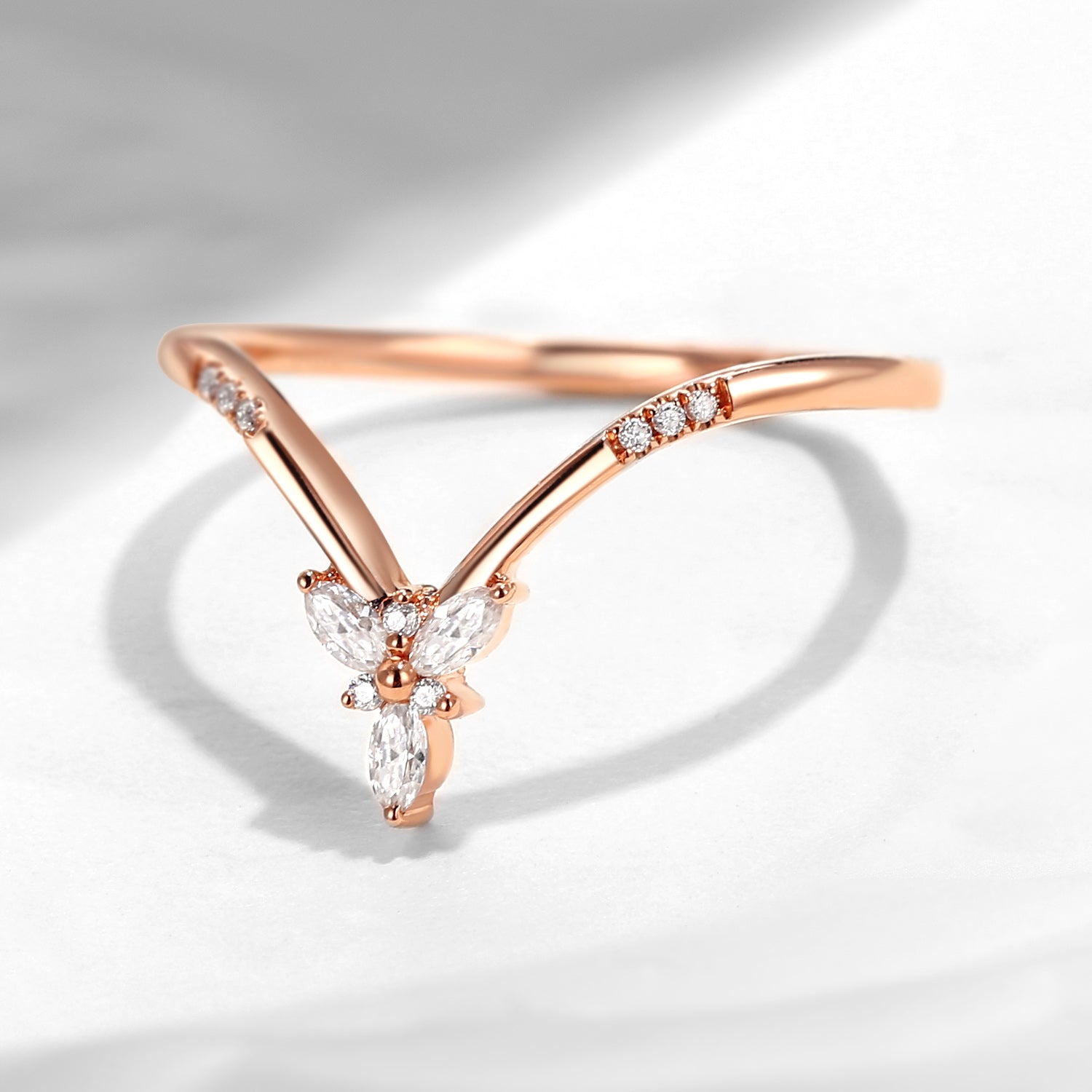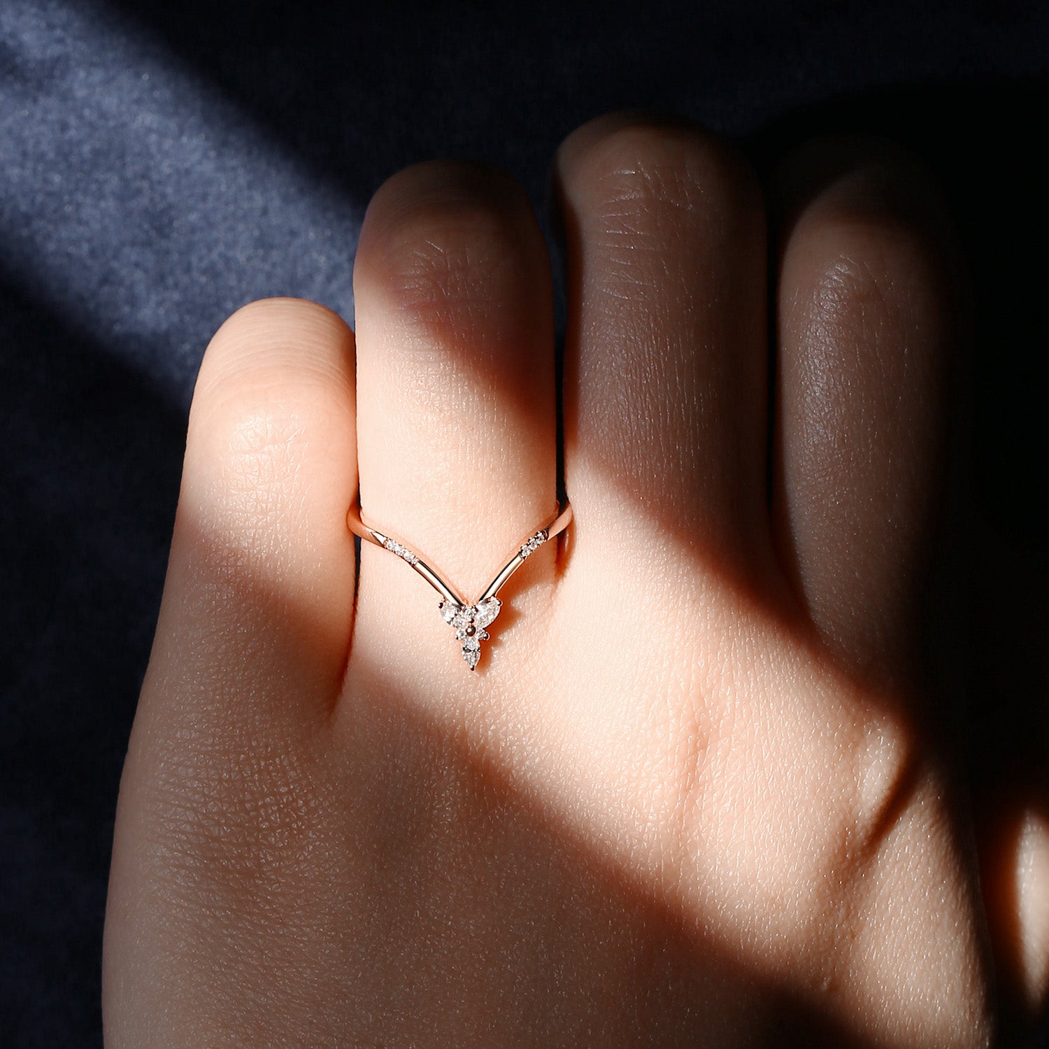 Marquise Cut Chevron Ring Women Dainty Wedding Band