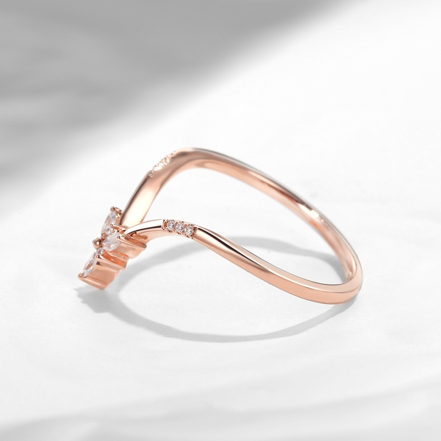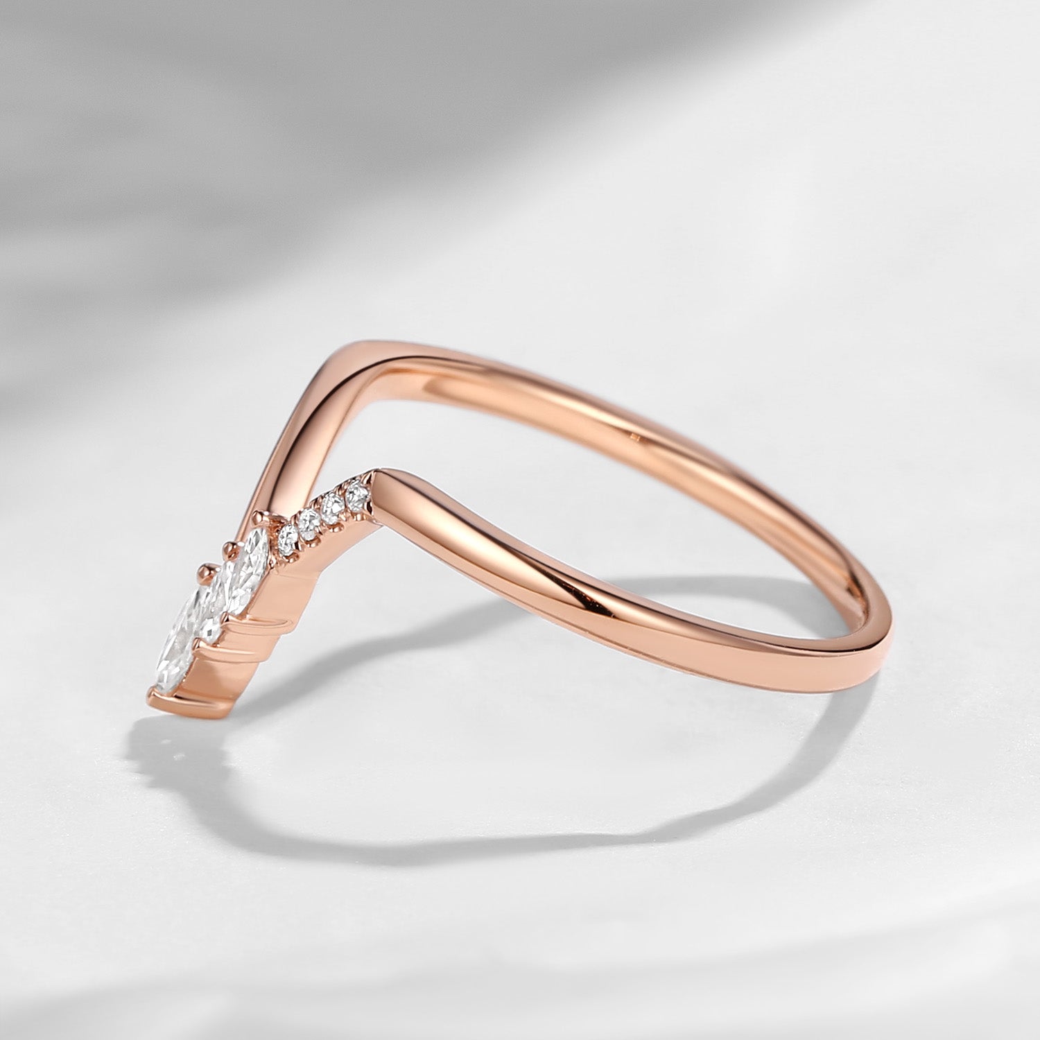 Marquise Cut Chevron Ring Women Curved Wedding Band