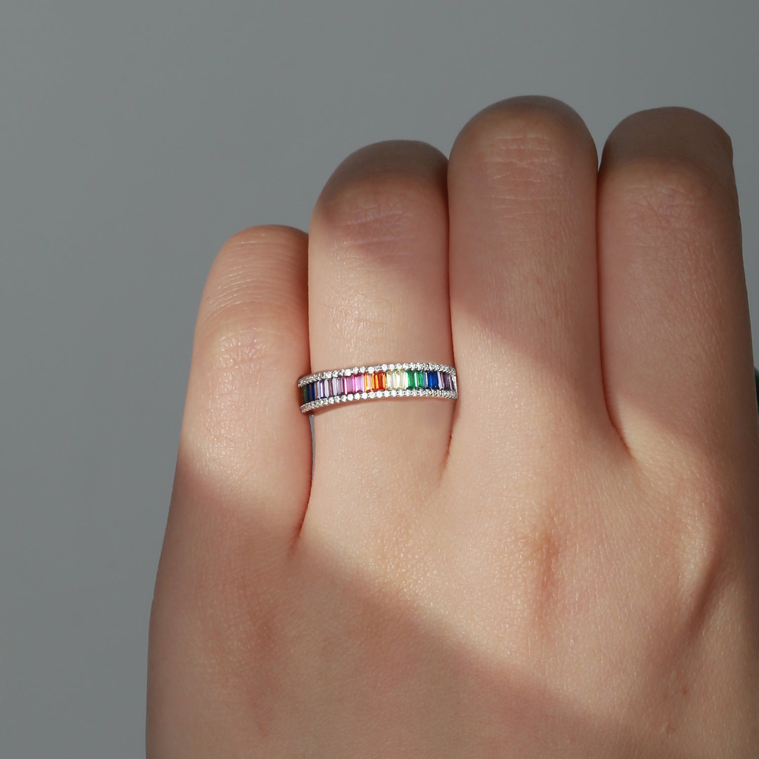 Full Eternity Baguette Cut Pave Rainbow Ring