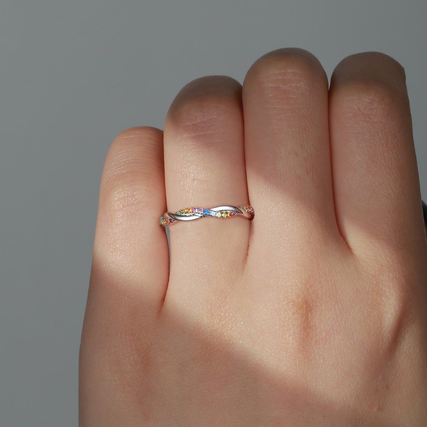 Full Eternity Natural Rainbow Sapphire Infinity Stacking Ring