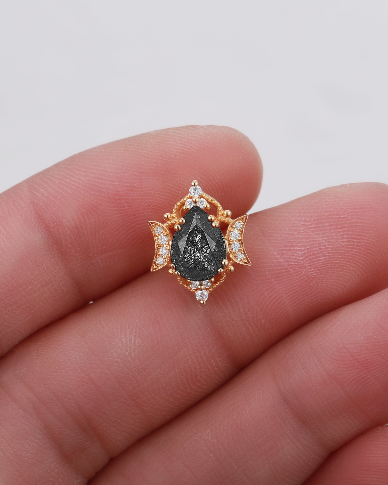 Classic Black Rutilated Quartz Curved Wedding Band
