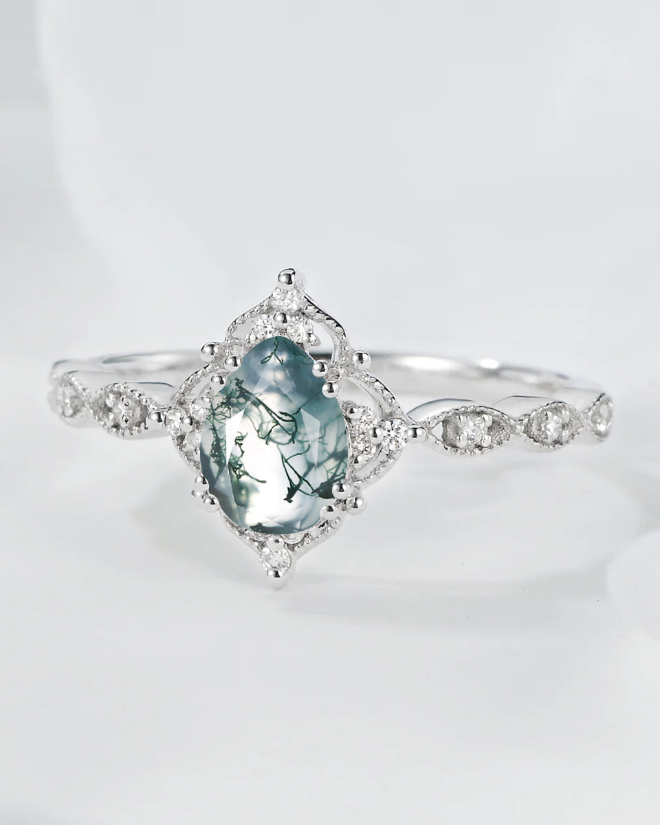 Vintage Pear Shaped Moss Agate Engagement Ring