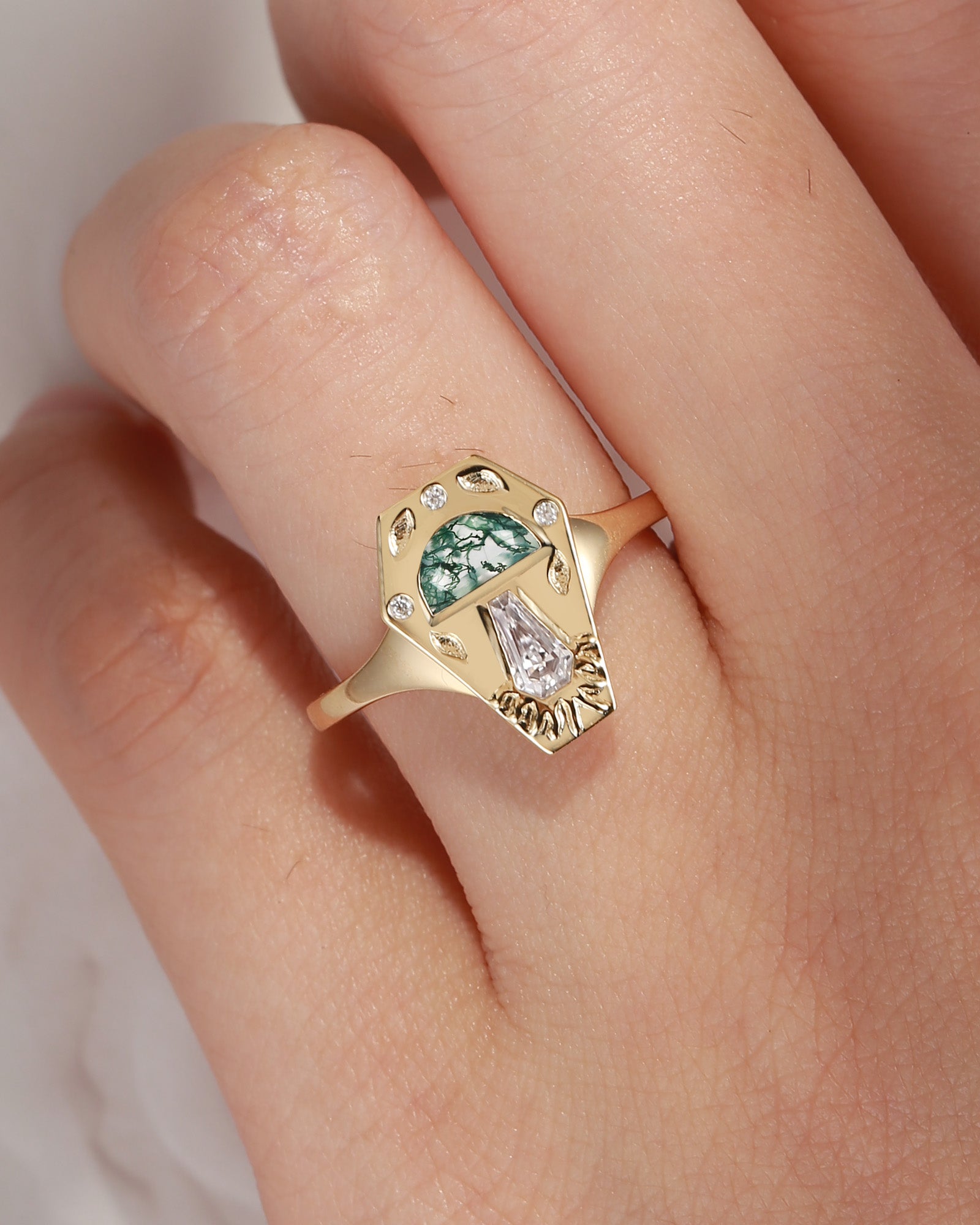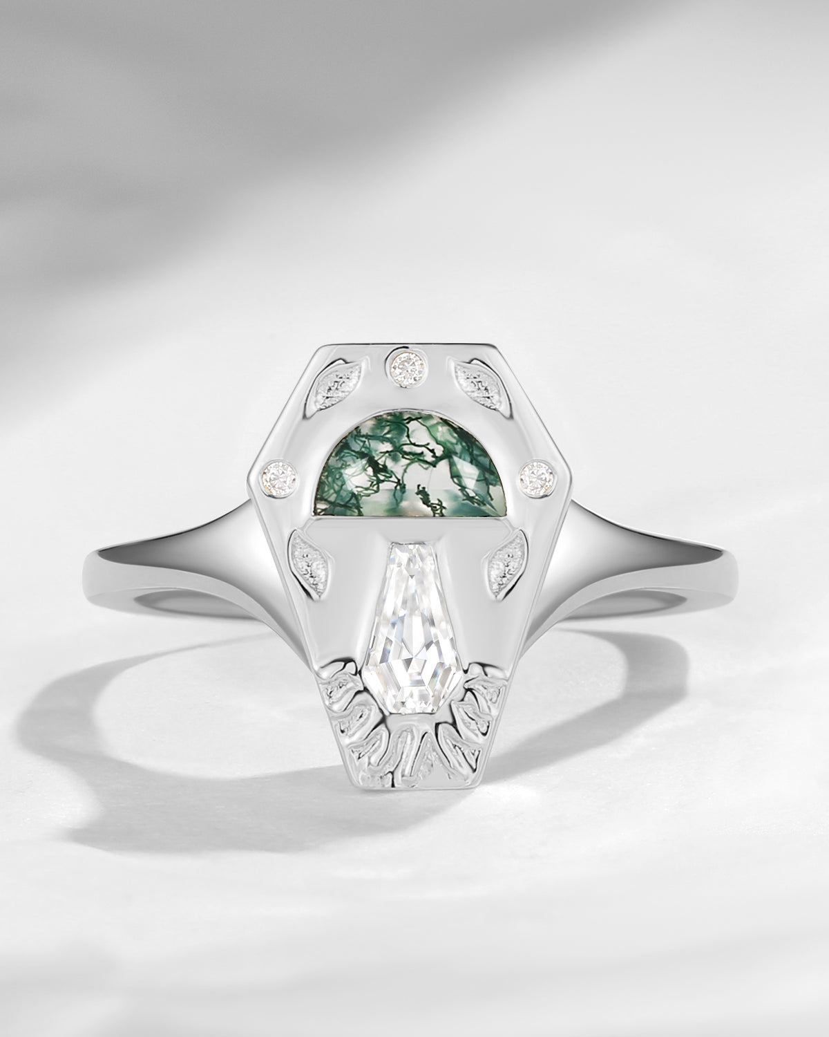 Pure Moon | Fancy Coffin Cut Moss Agate Engagement Ring Set 2pcs