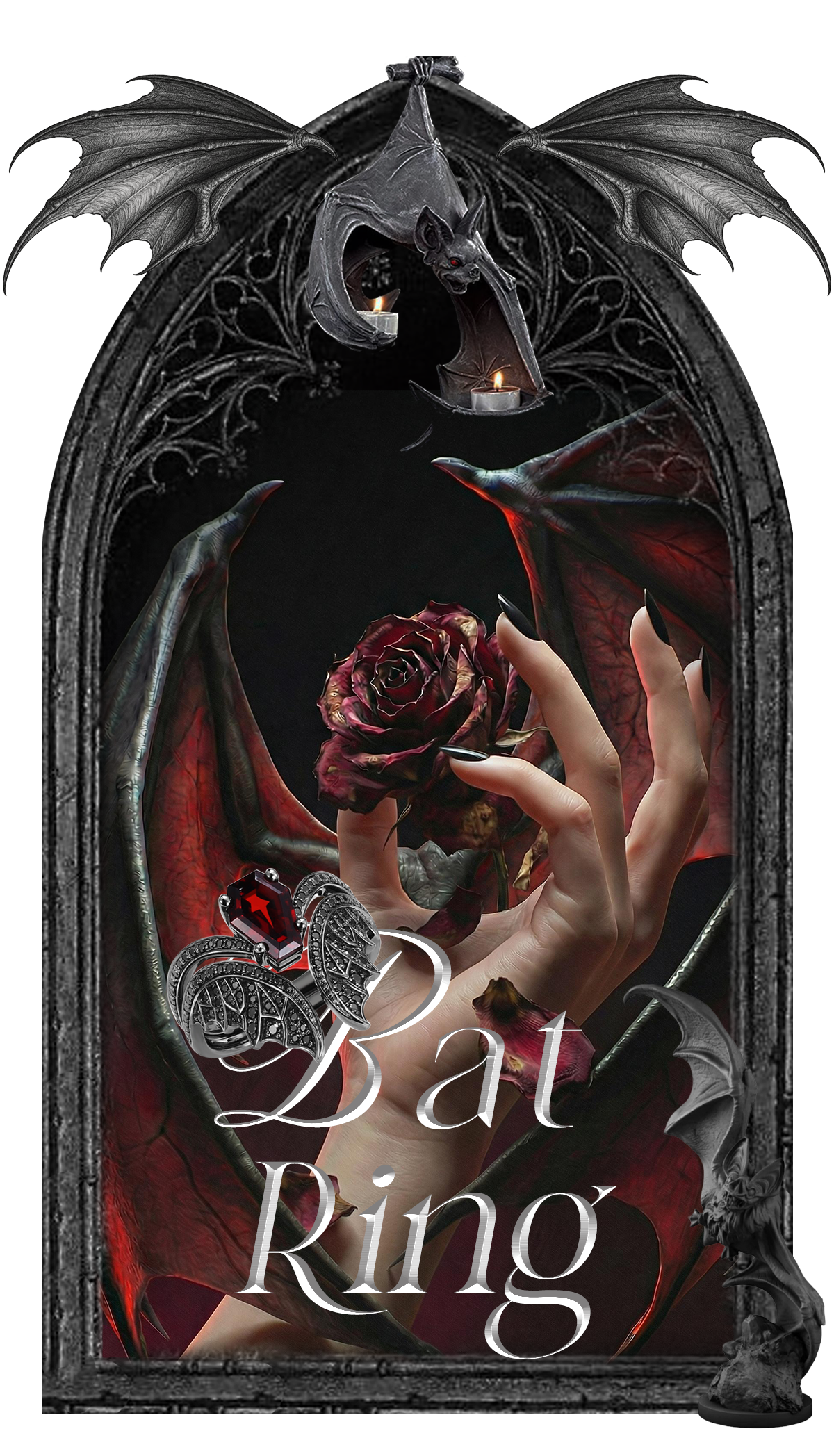 Kite Cut Garnet Bat Wing Inspired Thorns Engagement Ring Set 2pcs - Bat Ring