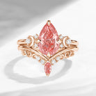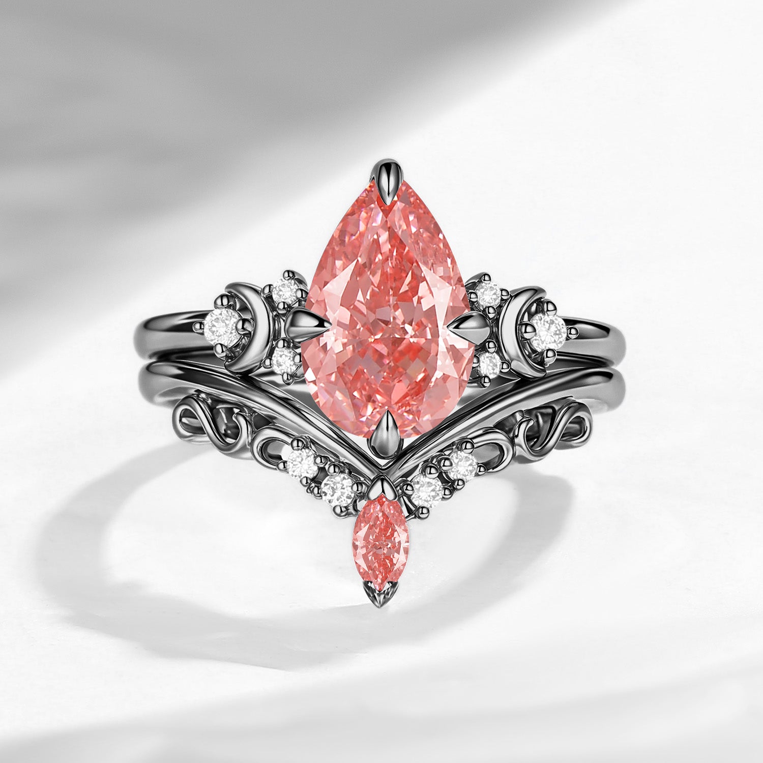 Crescent Moon | Pear Shaped Art Deco Pink Lab Diamond Engagement Ring Set 2pcs
