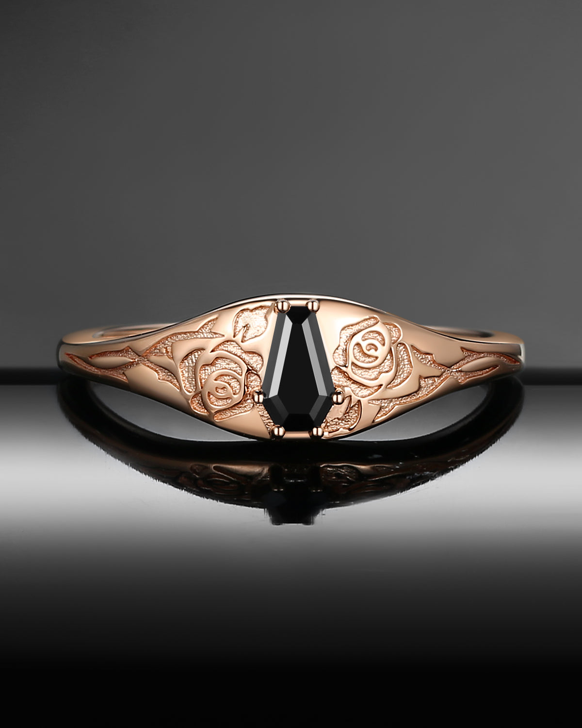 Nature Inspired Long Hexagon Garnet 'Thorns & Roses' Two-Toned Engagement Ring