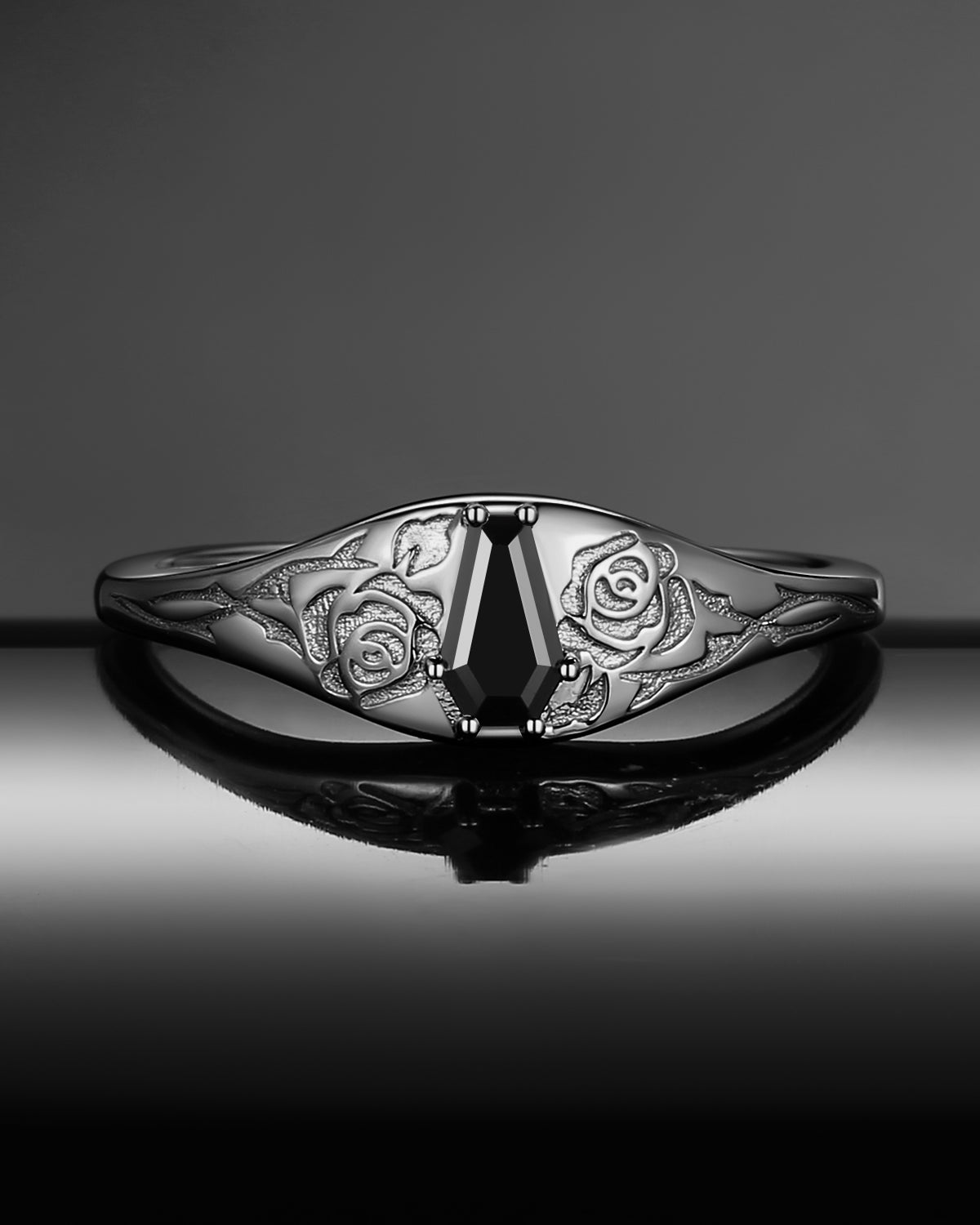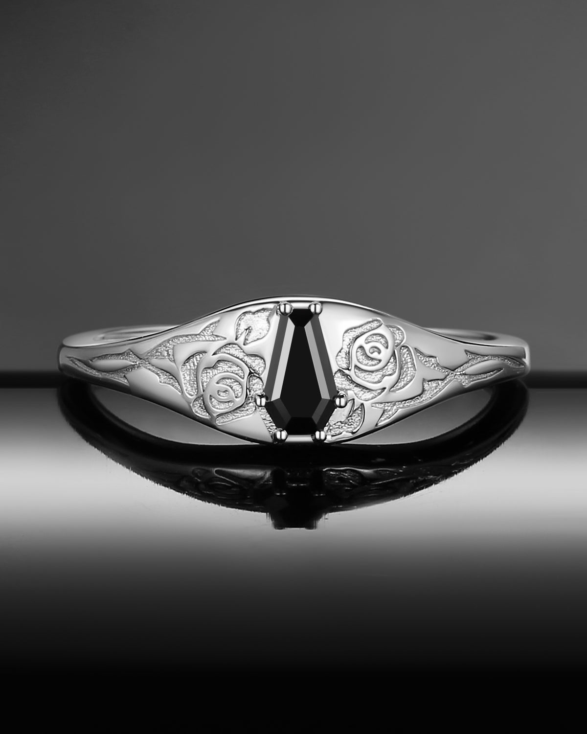 Unique Kite Shaped Moss Agate & Black Moissanite Butterfly Engagement Ring