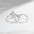 Unique Coffin Moonstone Engagement Ring Star Ring Set 2Pcs Bridal Set 2pcs Moonstone Cluster Ring Wedding Band Gift