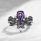 Select moreCeltic Calendar | 1.21-2.17 | Coffin Amethyst Nature Inspired Rowan Leafy Celtic Ring Set 2pcs