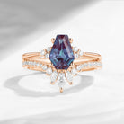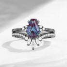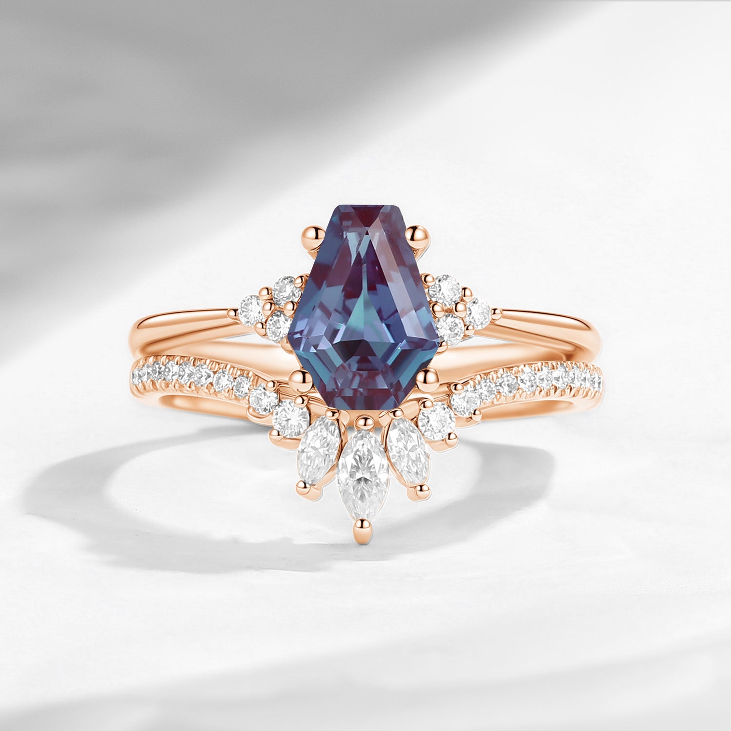 Classic Coffin Cut Lab Alexandrite Engagement Set 2pcs - White Dress