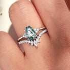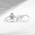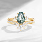Classic Coffin Cut Moss Agate Engagement Set 2pcs - White Dress