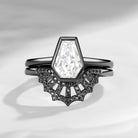 Classic Coffin Spider Web Moissanite Black Gold Engagement Ring Set 2pcs