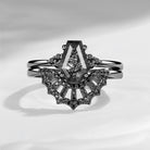 Cluster Coffin Black Rutilated Quartz & Black Moissanite Spider Web Black Gold Ring Set 2pcs