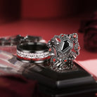 Coffin Black Moissanite 'Thorns & Roses' Ring & Mosaic Electroplated Couple Bridal Ring Set
