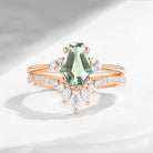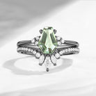 Coffin Cut Green Amethyst Cluster Engagement Set 2pcs - White Dress