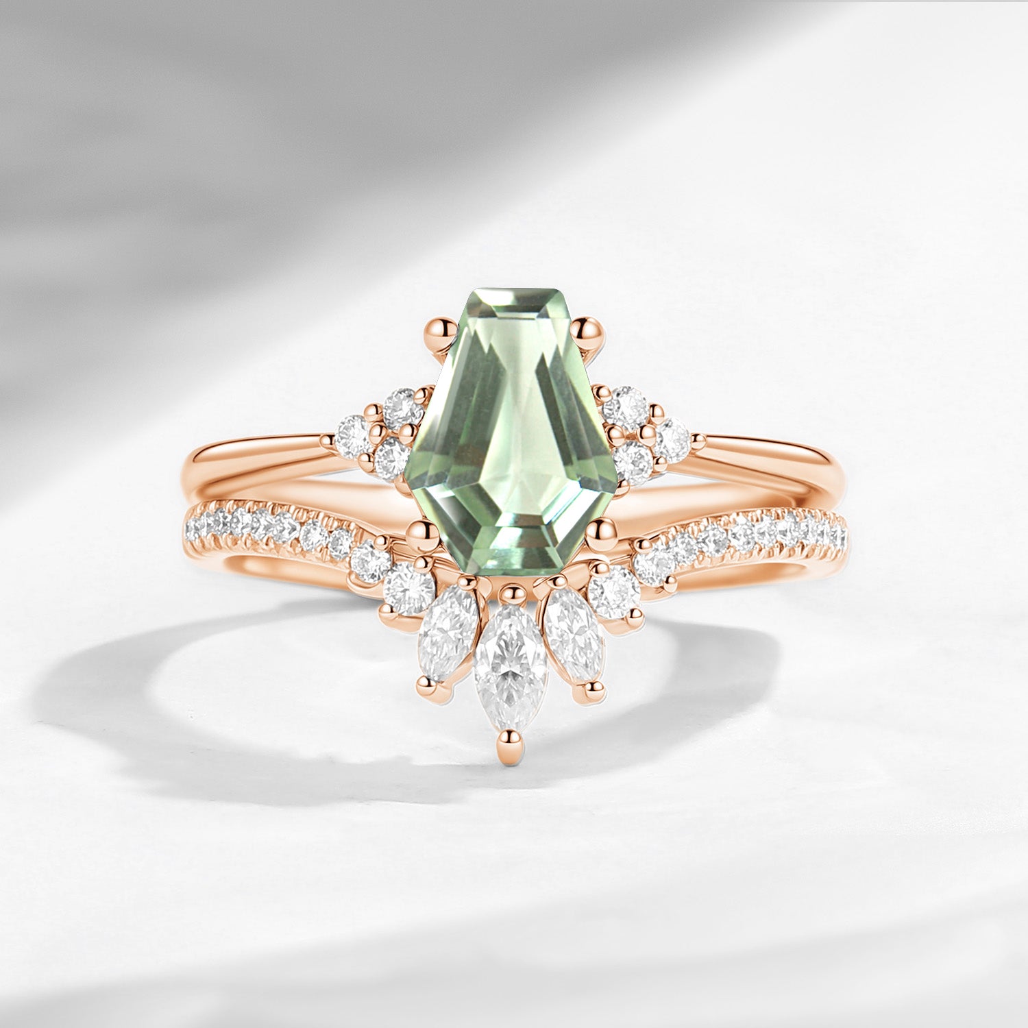 ⟢ Center Stone: Green Amethyst in coffin shape, 1.5ct as shown