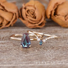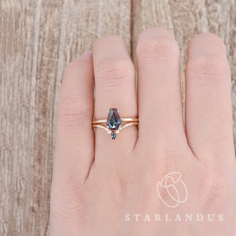 Coffin Cut Lab Alexandrite Ring Set 2pcs