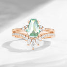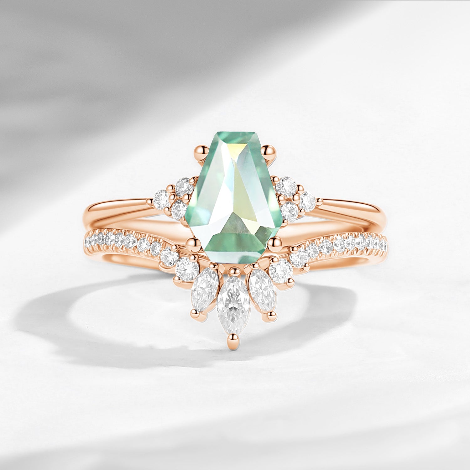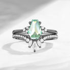 Coffin Cut Mint Moissanite Cluster Engagement Set 2pcs - White Dress