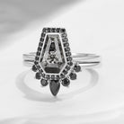 Coffin Cut Salt And Pepper Diamond Engagement Ring Set 2pcs - Goth Girl