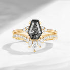 Coffin Black Rutilated Quartz Engagement Ring 2PCS - White Dress