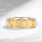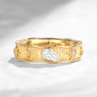Coffin Moissanite Soft Textured Ripples Sun & Moon Wedding Ring