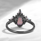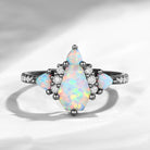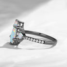 Coffin Shaped Cluster Lab Opal Black Gold Engagement Ring