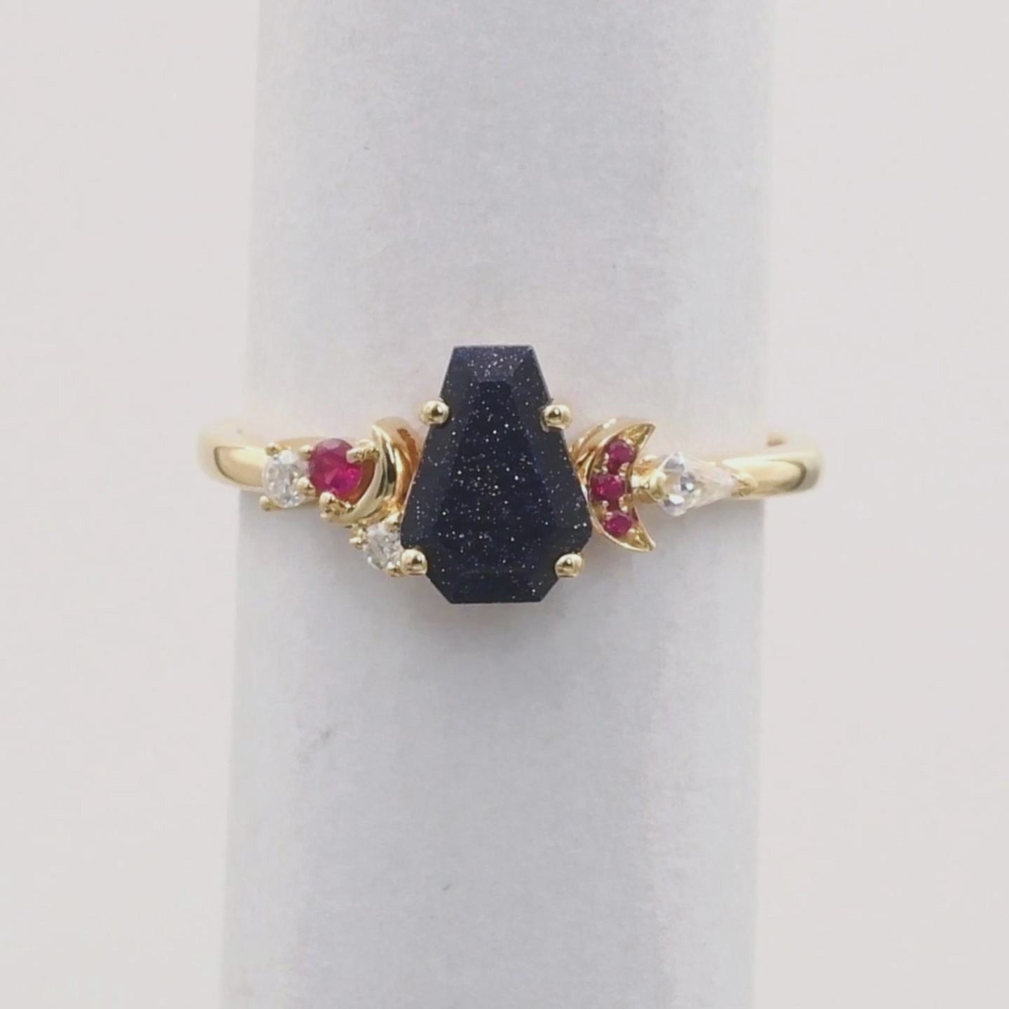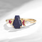 Crescent Moon | Art Deco Coffin Blue Sandstone Cluster ‘Blossom Moon' Engagement Ring