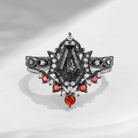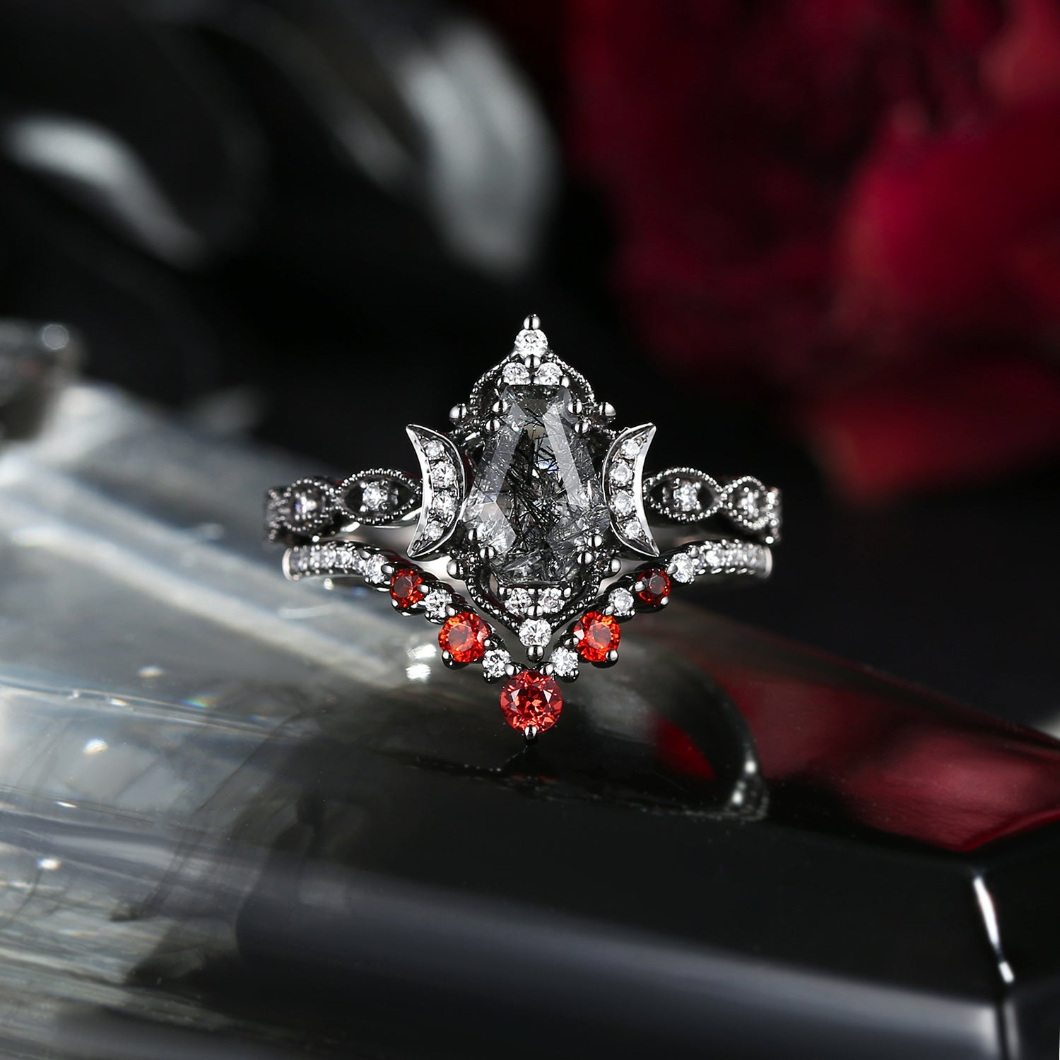 Crescent Moon | Coffin Cut Black Rutilated Quartz Garnet 'Black Statement' Ring Set 2pcs