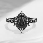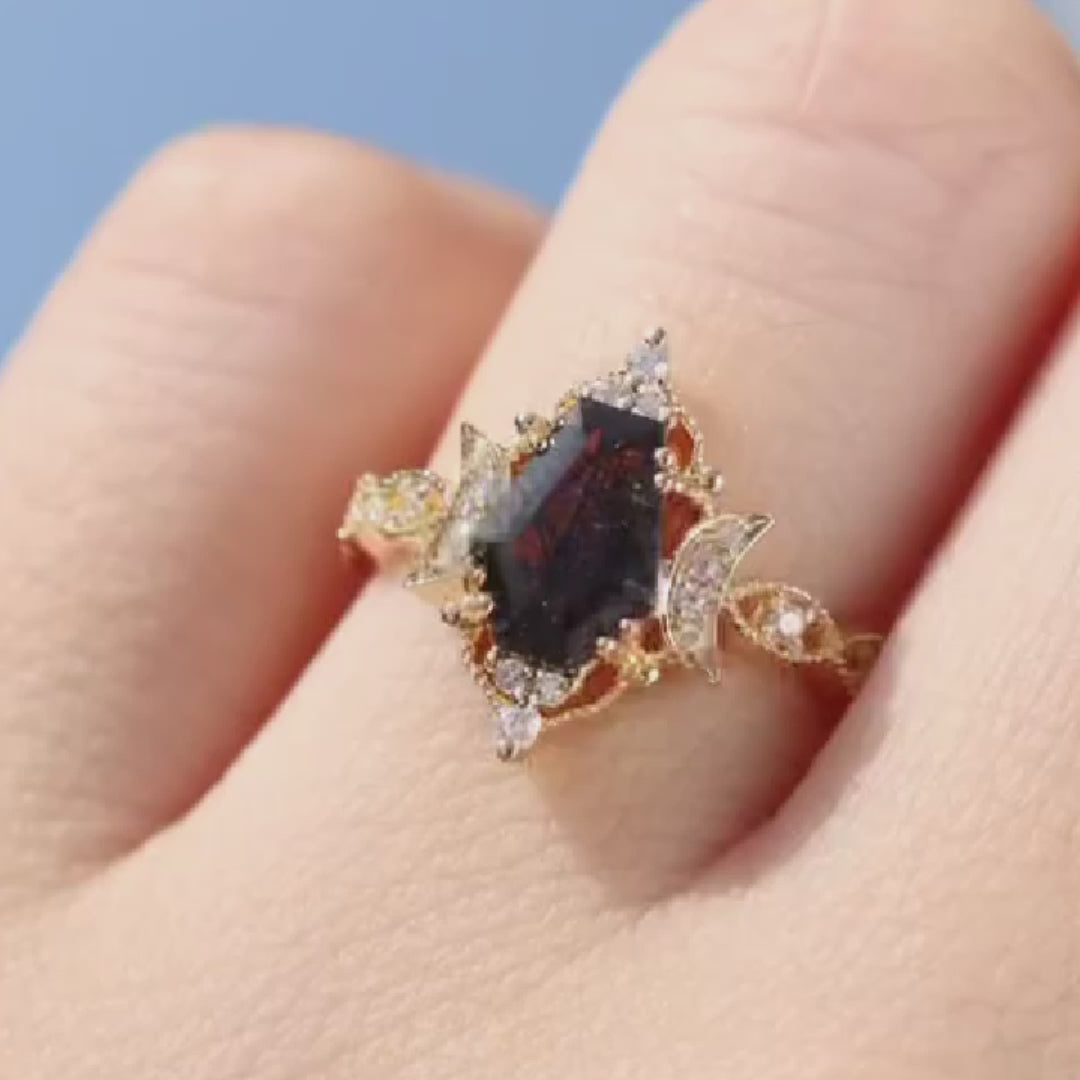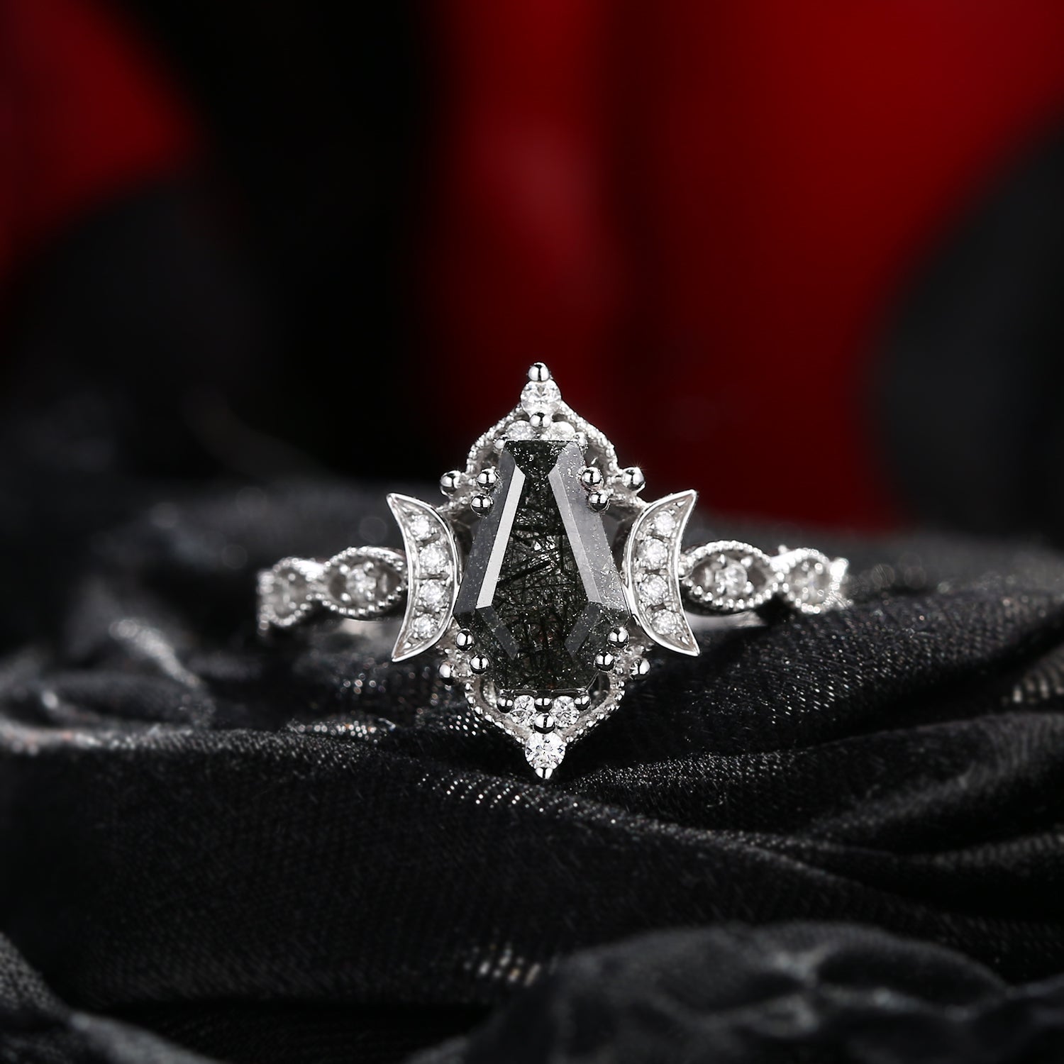 Crescent Moon | Coffin Cut Black Rutilated Quartz Ring Crystal Engagement Ring Unique Engagement Ring