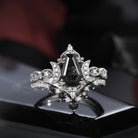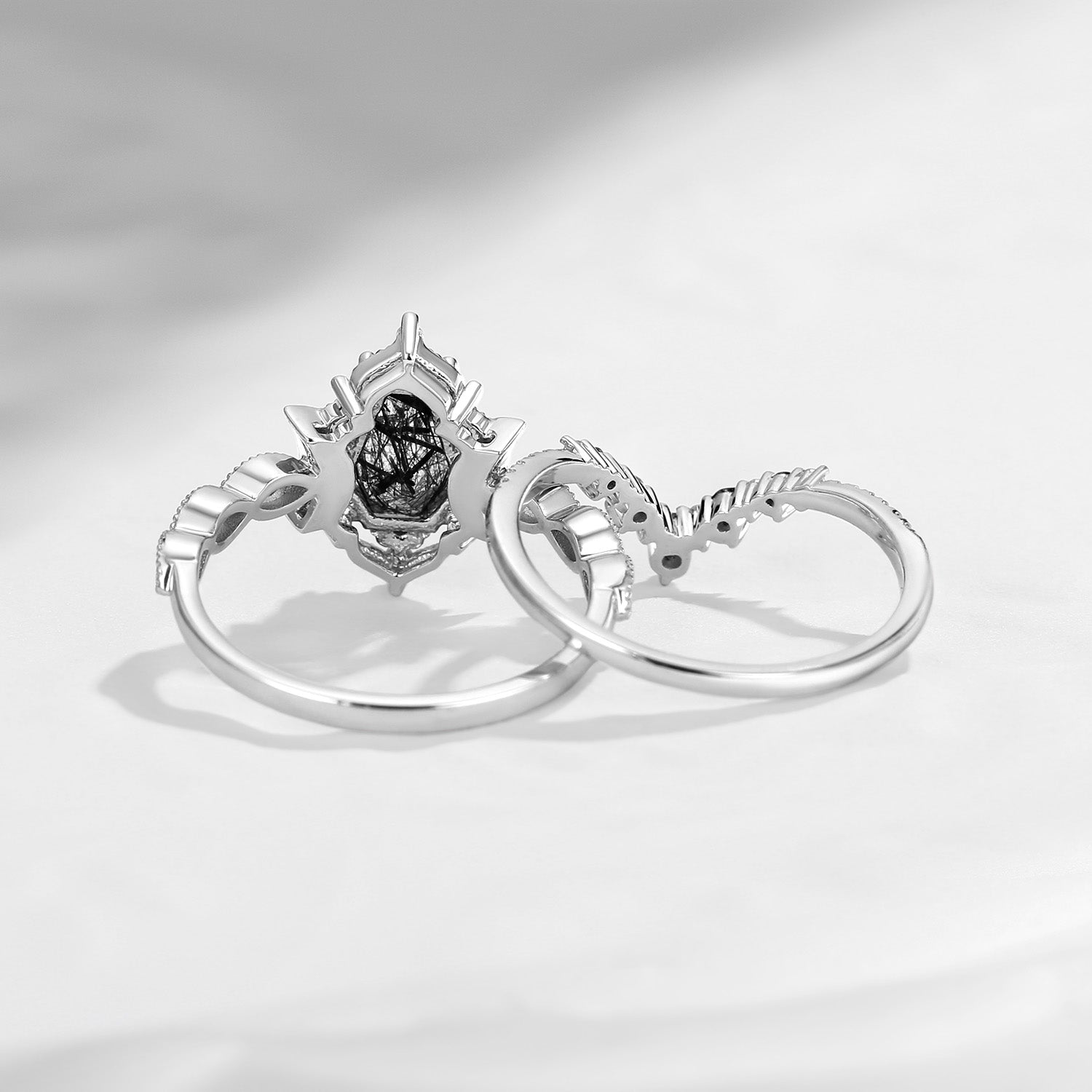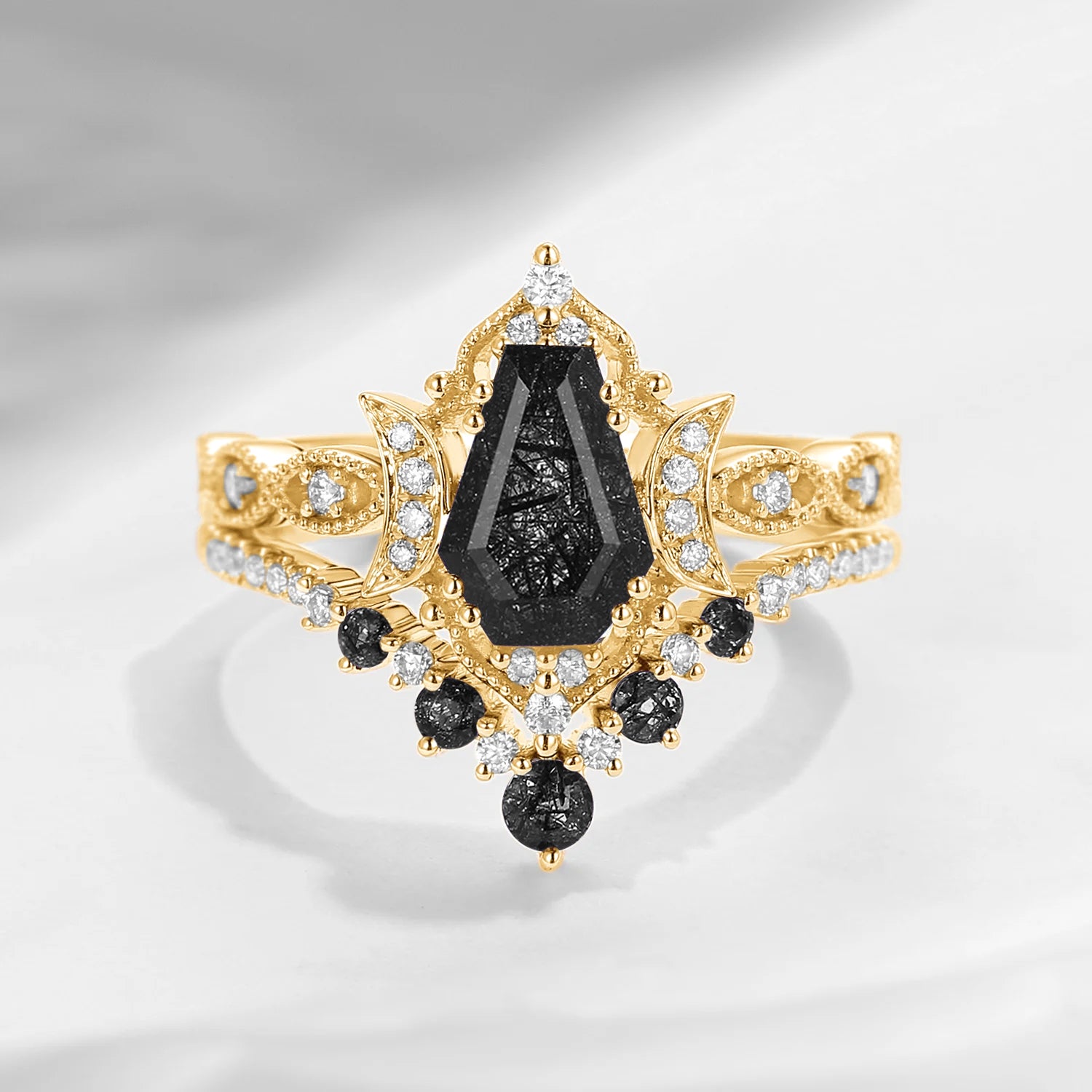 Crescent Moon | Coffin Cut Black Rutilated Quartz 'Till Death Do Us Part' Ring Set 2pcs