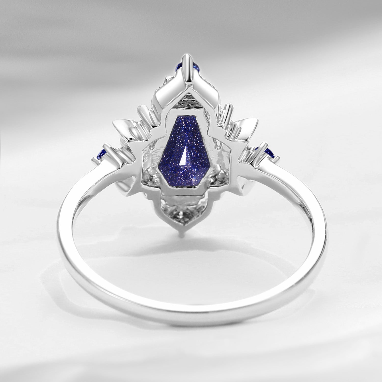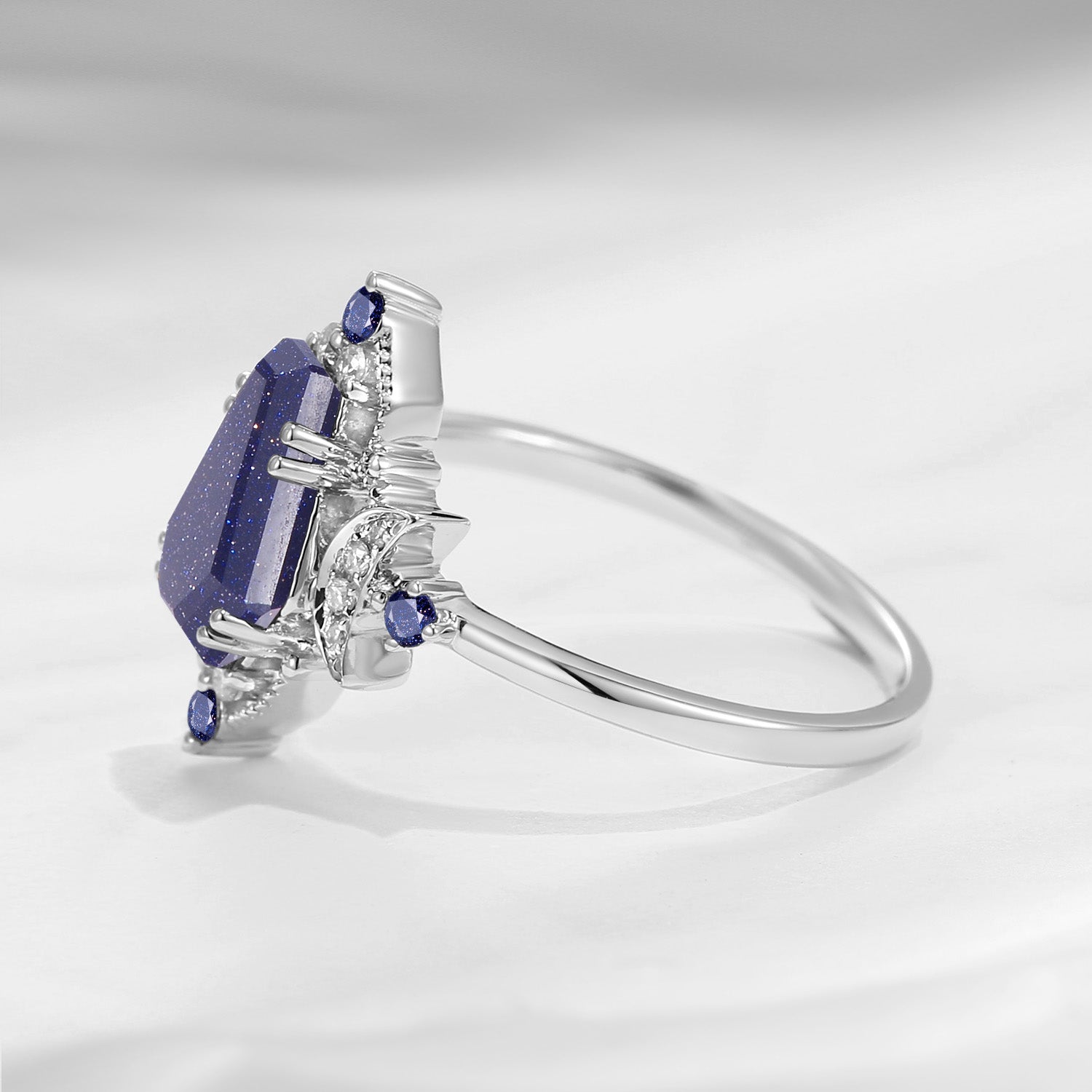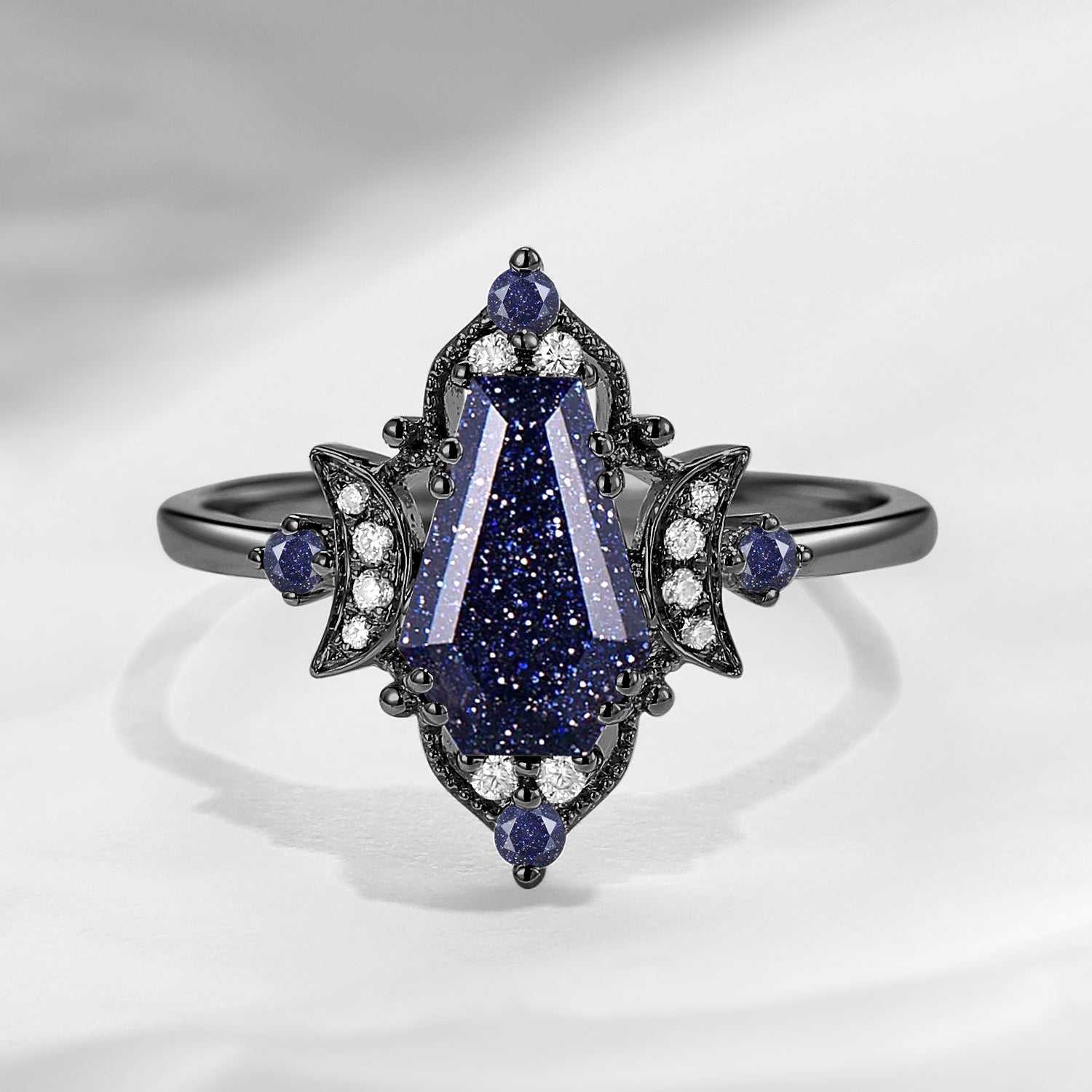 Crescent Moon | Coffin Cut Blue Sandstone Vintage Inspired Engagement Ring 'Evermore'