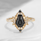Crescent Moon | Coffin Cut Black Rutilated Quartz Infinity Galaxy Engagement Ring