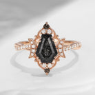 Crescent Moon | Coffin Cut Infinity Galaxy Engagement Ring Black Crystal Bridal Set Antique Ring Art Deco Open Wedding Band