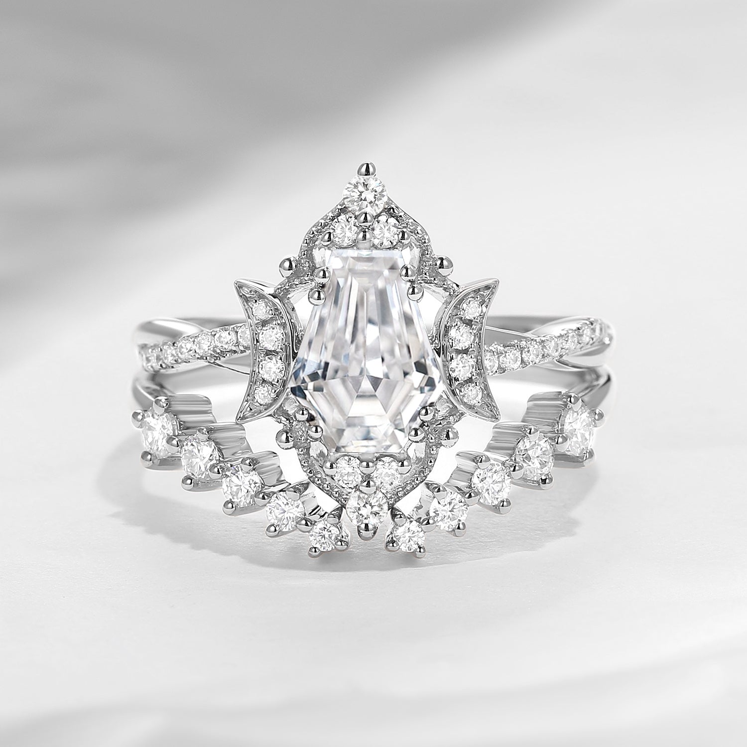 Crescent Moon | Coffin Cut Moissanite Twisted Infinity Open Engagement Ring 2pcs